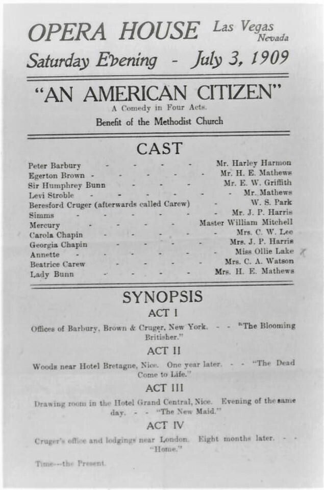 Las Vegas, NV. Program from the Opera House production of "An American Citizen" on July. 3, 1909Entry/Object ID