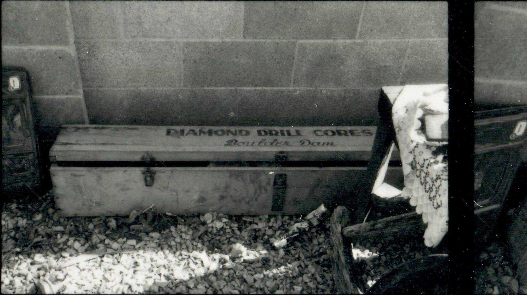 Hoover Dam diamond drilled core samples from Black Canyon, 1930; Dennis McBride, photographer; photo taken 1985; property of Virginia "Teddy" Fenton, since lost [negative]Collection