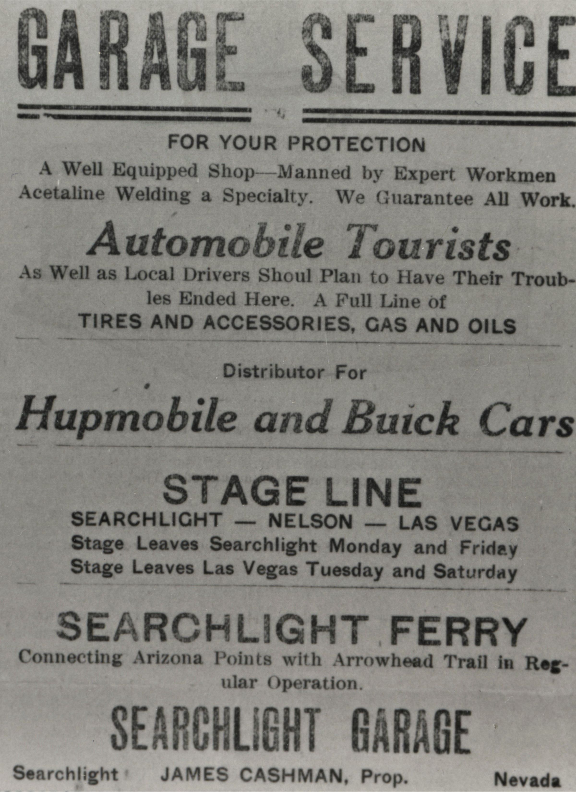 Las Vegas- Business Advertisement Searchlight Garage, Oct. 11, 1919Entry/Object ID