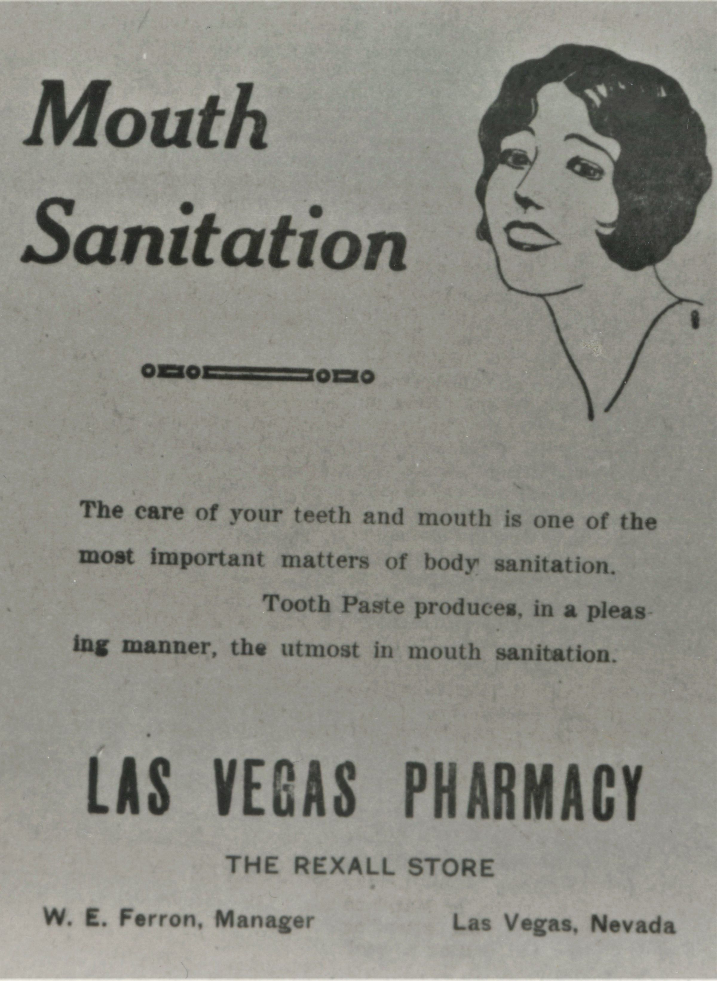 Las Vegas- Business Advertisement; Las Vegas Pharmacy ["Mouth Sanitation" April 3, 1926]Entry/Object ID