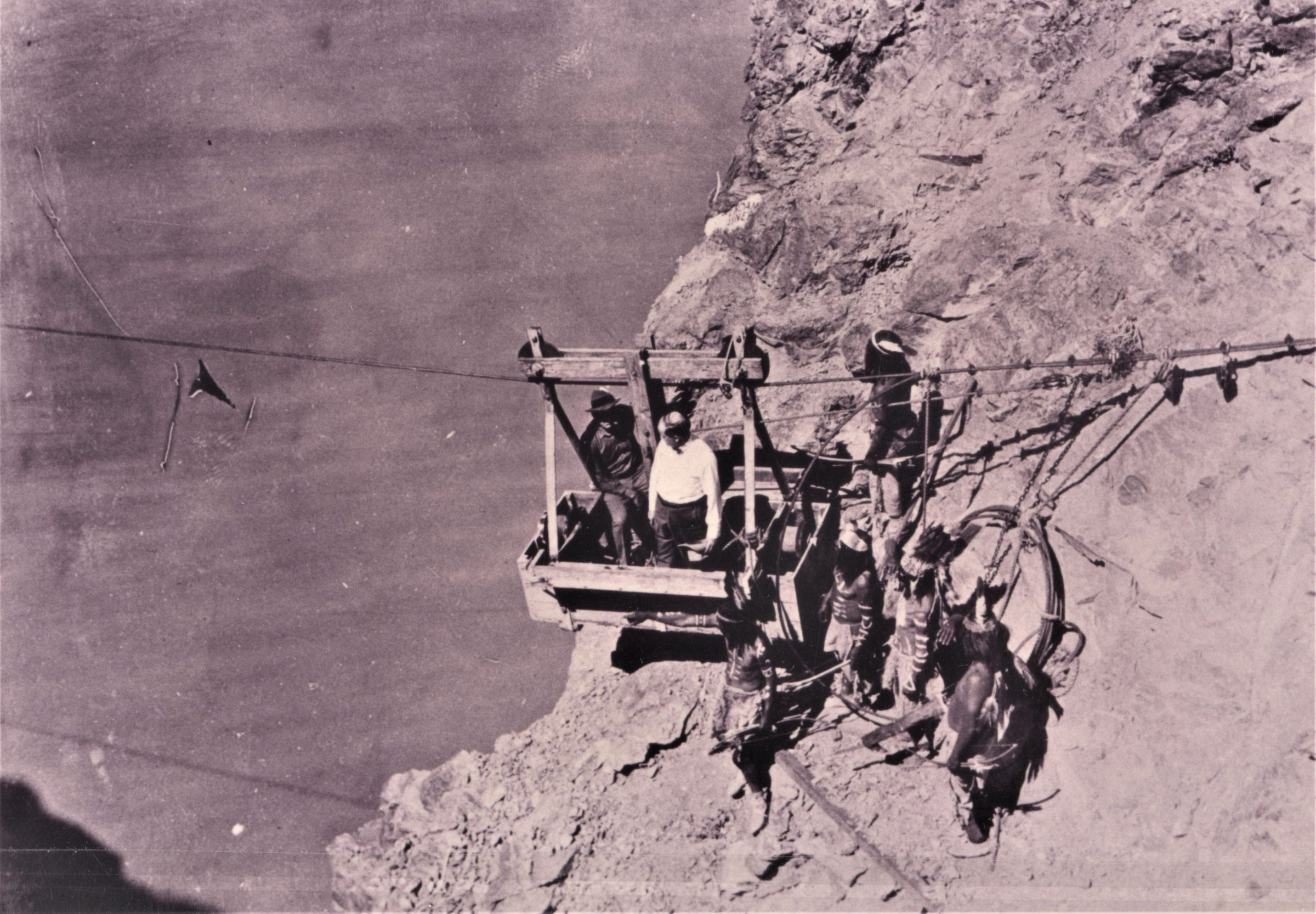 Boulder Canyon- Nevada Governor James Scrugham with Moapa Paiute Indians in costume at the USBR gauging station, 1925Entry/Object ID