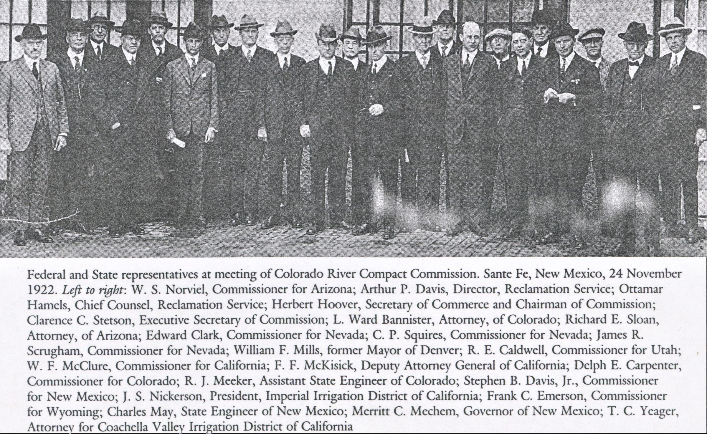 W.S Norviel, Arthur P. Daivs, Ottamar Hamels, Herbert Hoover, Clarence C. Stetson, L. Ward Bannister, Richard E. Sloan, Edward Clark, C.P. Squires, James R. Schruham, William F. Mills, R.E. Caldwell, W.F. McClure, F.F. McKisick, Delph E. Carpenter, R.J. Meeker, Stephen B. Davis Jr., J.S. Nickersin, Frank C. Emerson, Charles May, Merritt C. Mechem, T.C Yeager, Hoover Dam