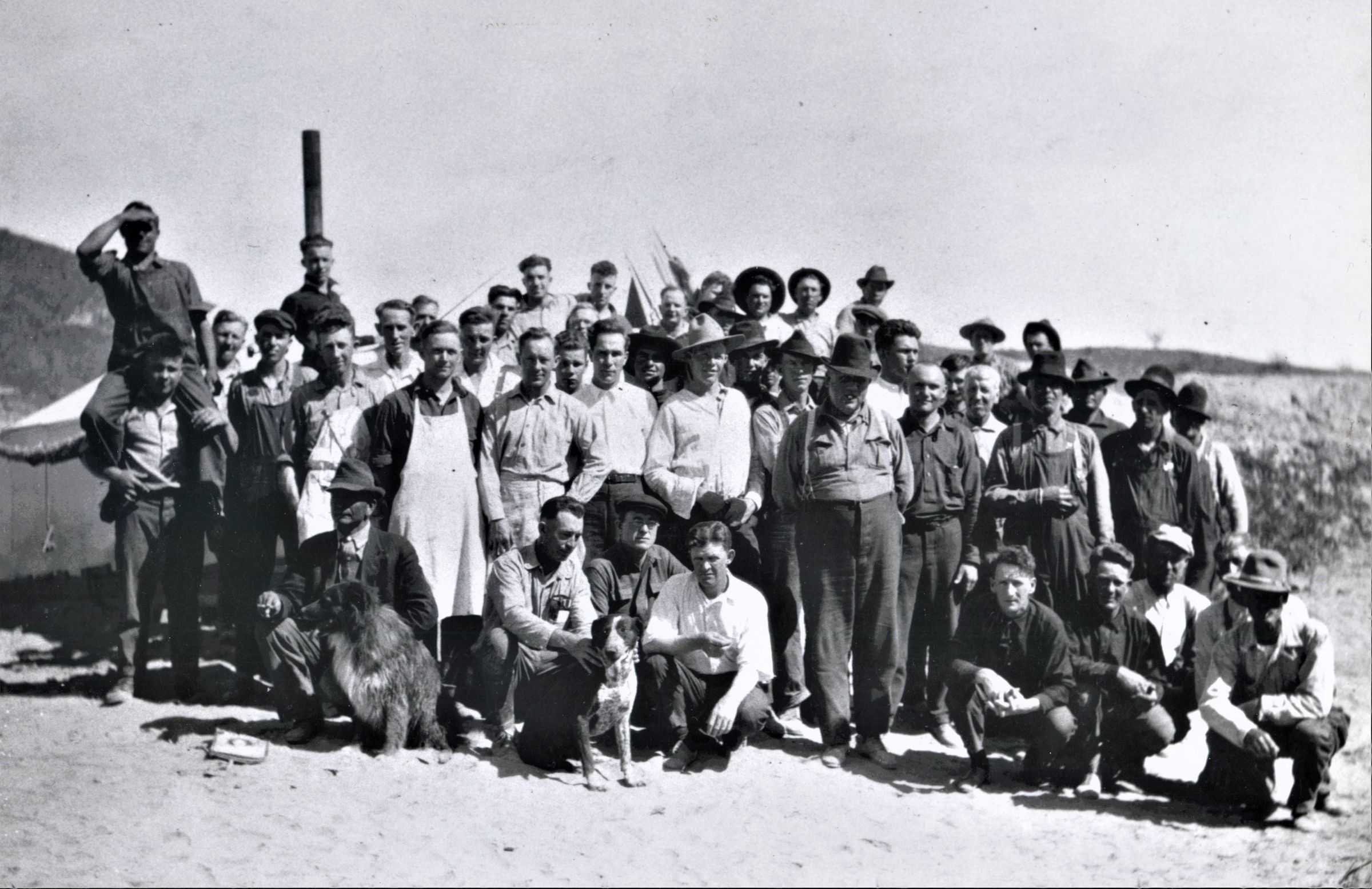 Boulder Canyon; Crew at Boulder Canyon Camp Drill foreman George A. Hammond; in front row standing; February 26, 1921; USBR photo Wash. no. 97; Walker Young, photographerCollection