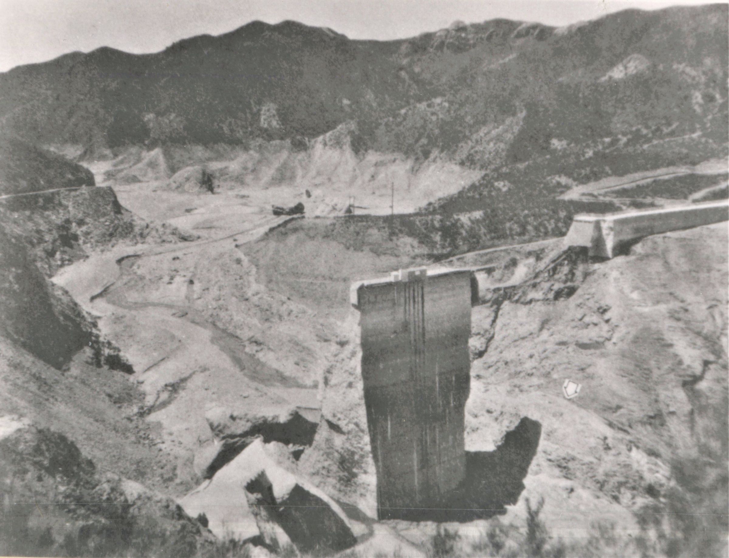 St. Francis Dam break; March 13, 1928; photos from "Man-Made Disaster: The Story of St. Francis Dam"; by Charles F. Outland; Glendale, CA; Arthur H. Clark; Co., 1963; p. 41; dam fragments; UNLS coll. # TC557 C3 S35 08Collection