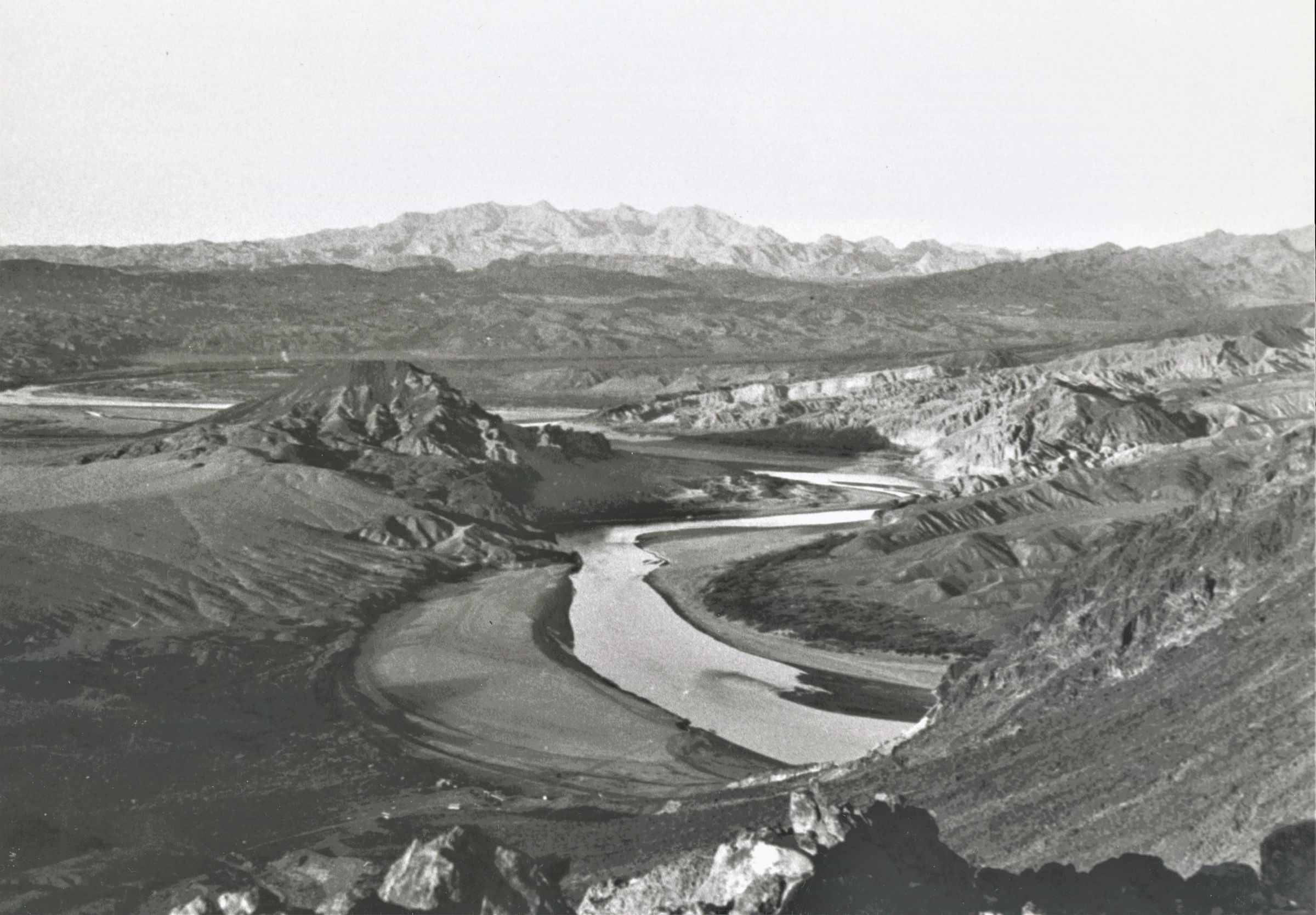 Colorado River; near Black Canyon; "The water will back up and cover the riverbed more than 500 feet at this point upon completion of Hoover Dam."; [future bed of Lake Mead; with Ragtown center; bottom, c. 1931; BCL; Graphic views of Hoover Dam, photo no. 54; W.A. Davis, photographerCollection