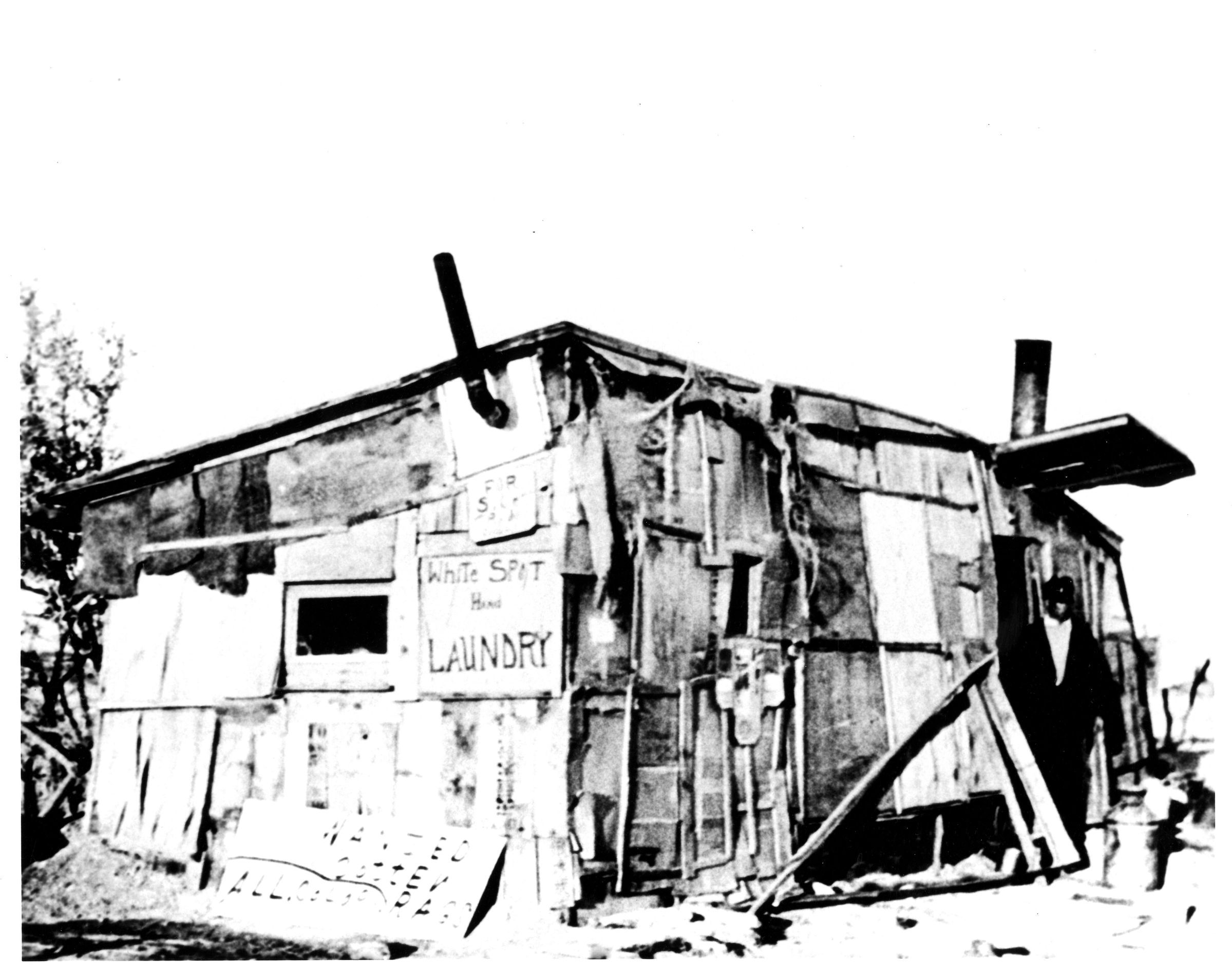 Pictured is the White Spot Hand Laundry; in North Las Vegas; also known as Hooverville; 1930-1932Made/Created