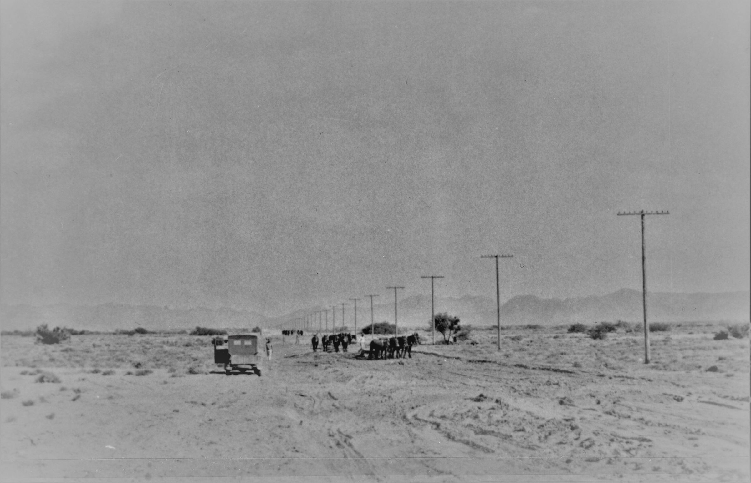 roads and streets; Boulder Highway construction; grading the roadbed with mules; 1931; Boulder City Library; Graphic Views of Hoover Dam; photo no. 76; Winthrop A. Davis, photographerCollection