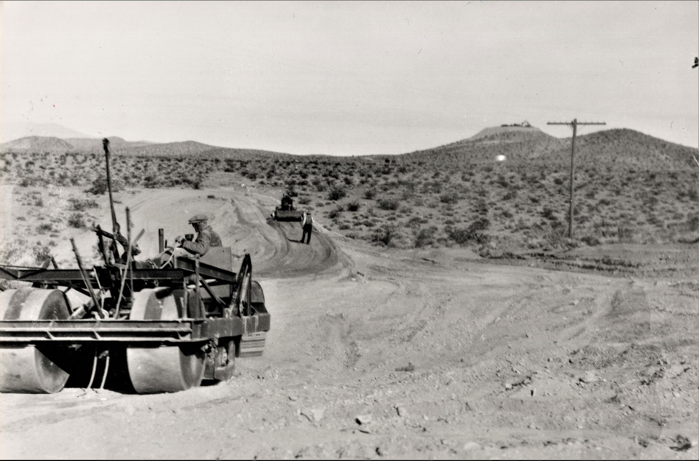 Boulder City; roads & Streets; NV. Hwy under construction; 1931; 2-million-gallon water tank; under construction on the hill in the left distanceMade/Created