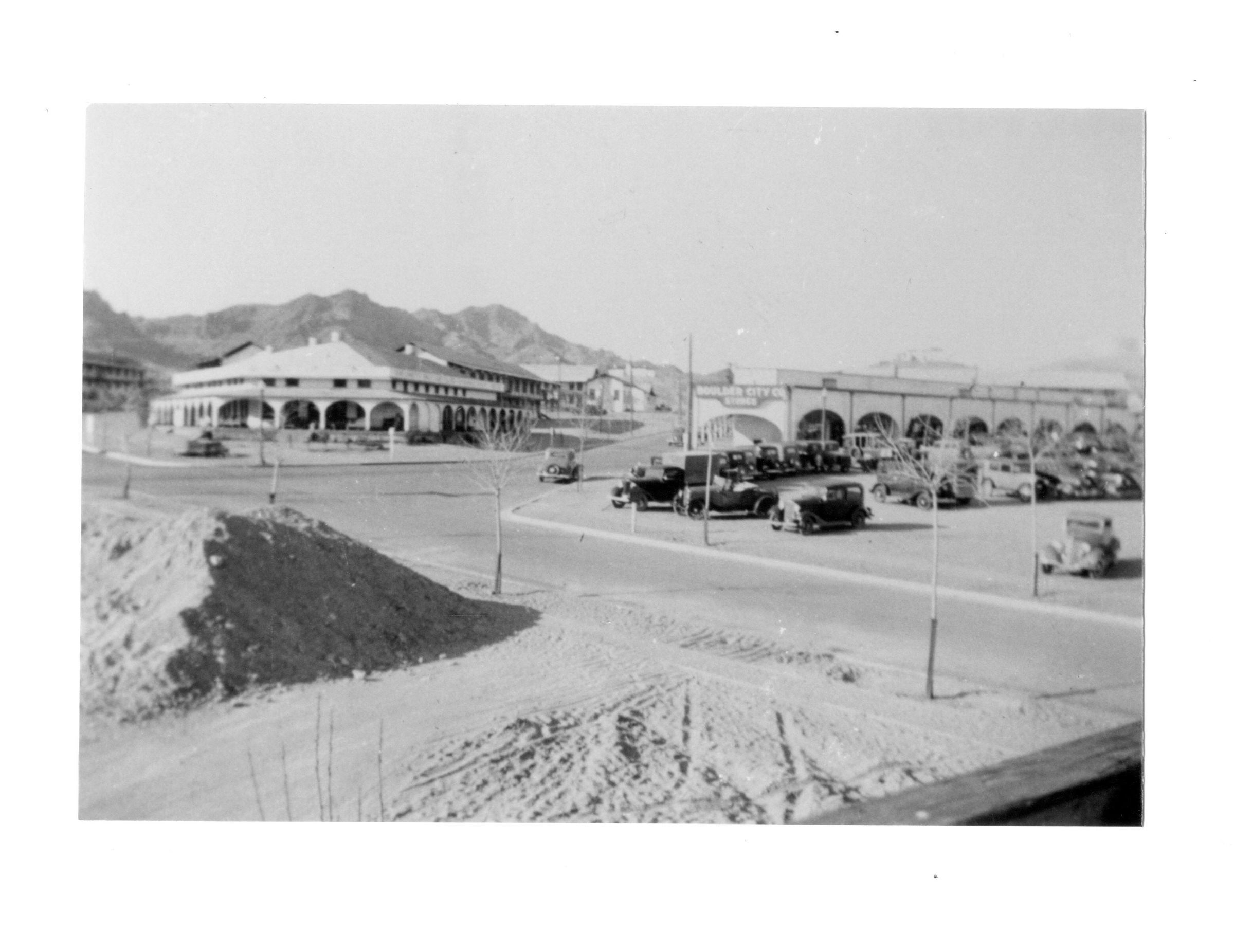 Boulder City; roads & Street; intersection of New Mexico, center; NV. Hwy; Birch St., right; & Cherry St., left; Six Co. recreation hall, left; Boulder City Co. Stores, rightMade/Created