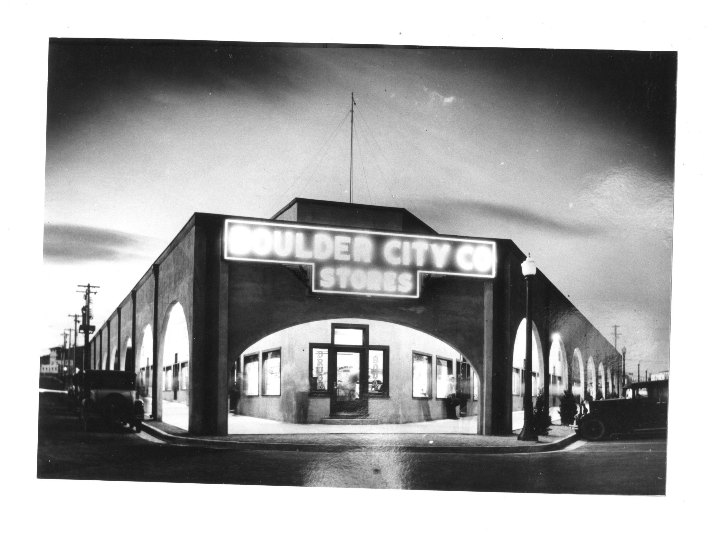 Boulder City Co. Store night shot; April 6,1932; USBR; no. 1086Collection