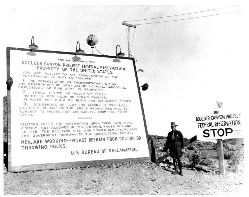 Boulder City law enforcement -Hoover Dam reservation gate 1932Entry/Object ID