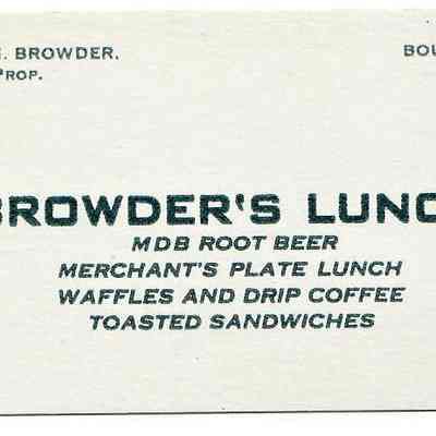 2 Browder's Cafe menusLocation