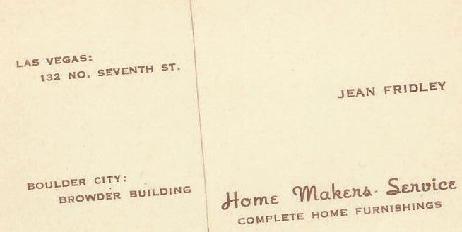 Jean Fridley, Homemaker's Service in Browder building, business card