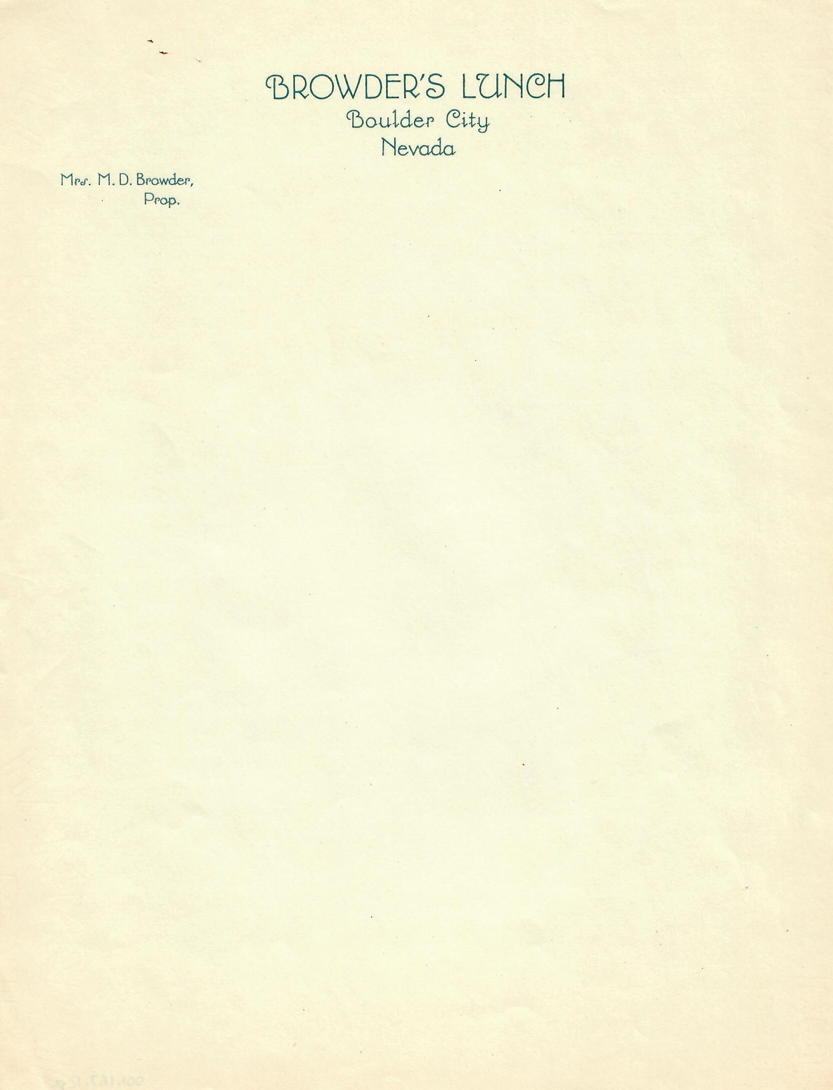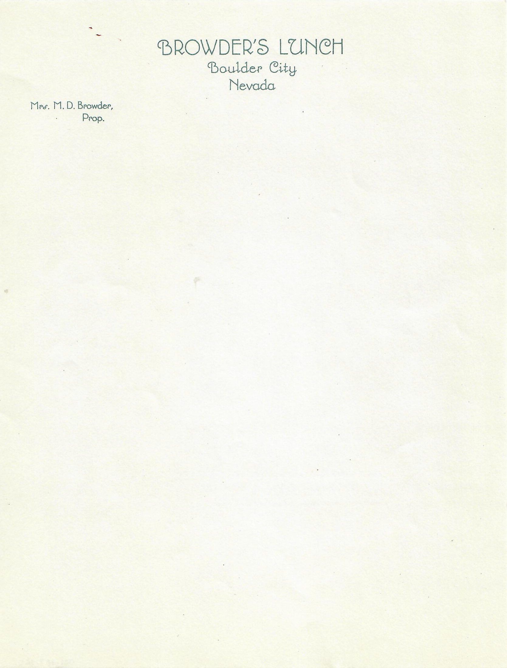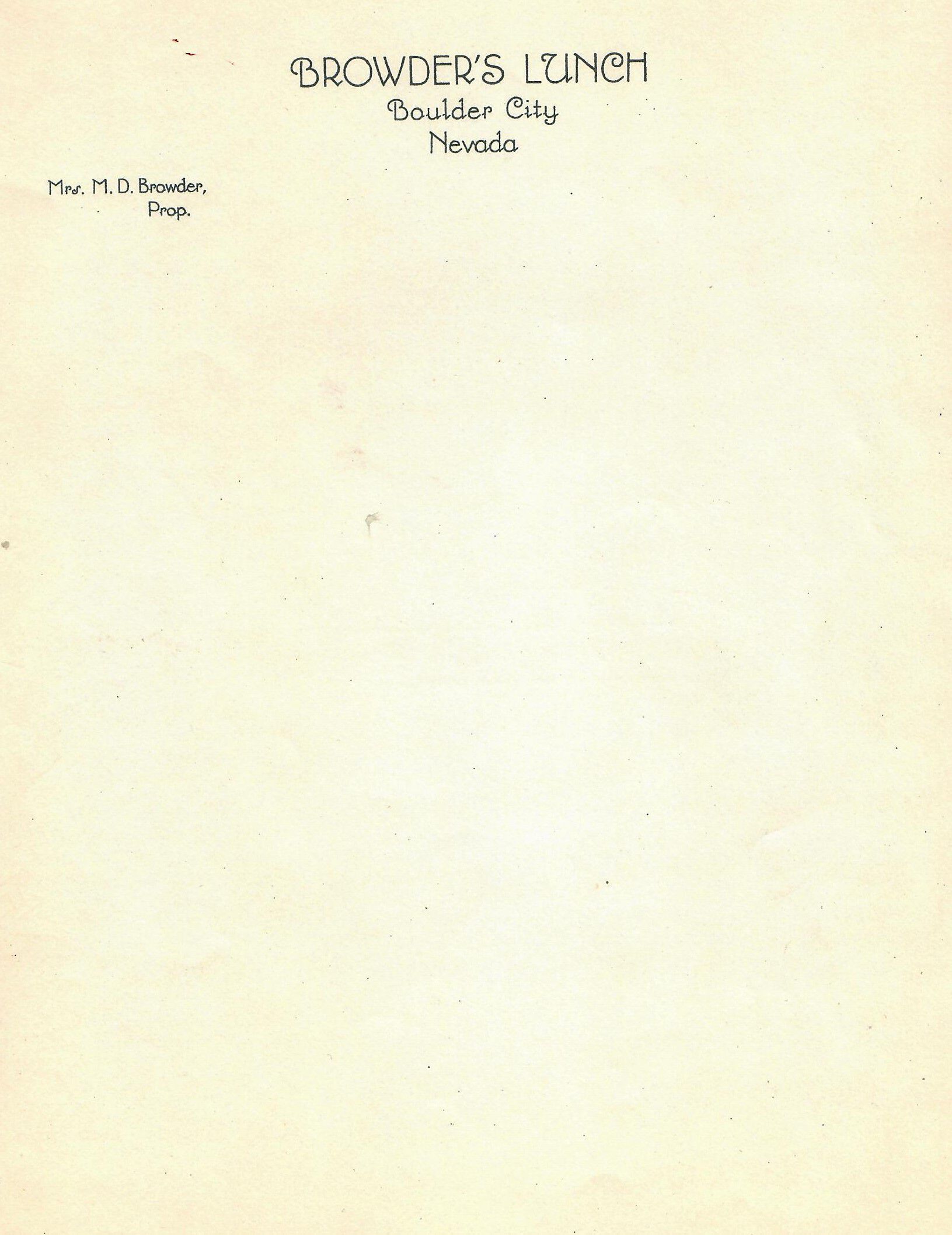 Browder's Lunch blank letterhead