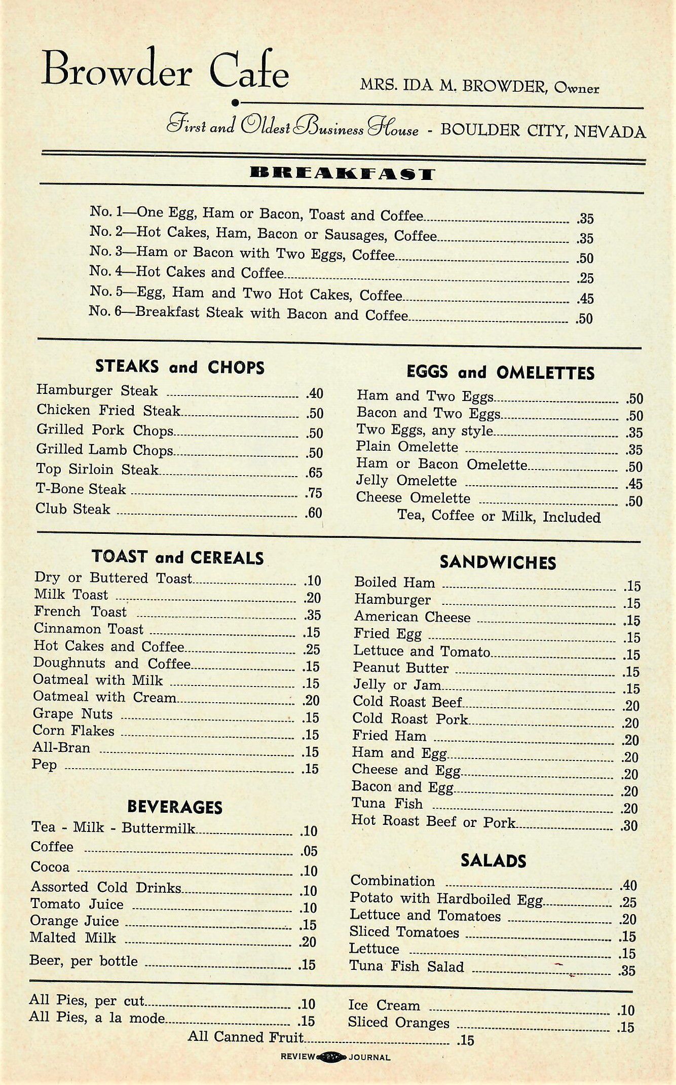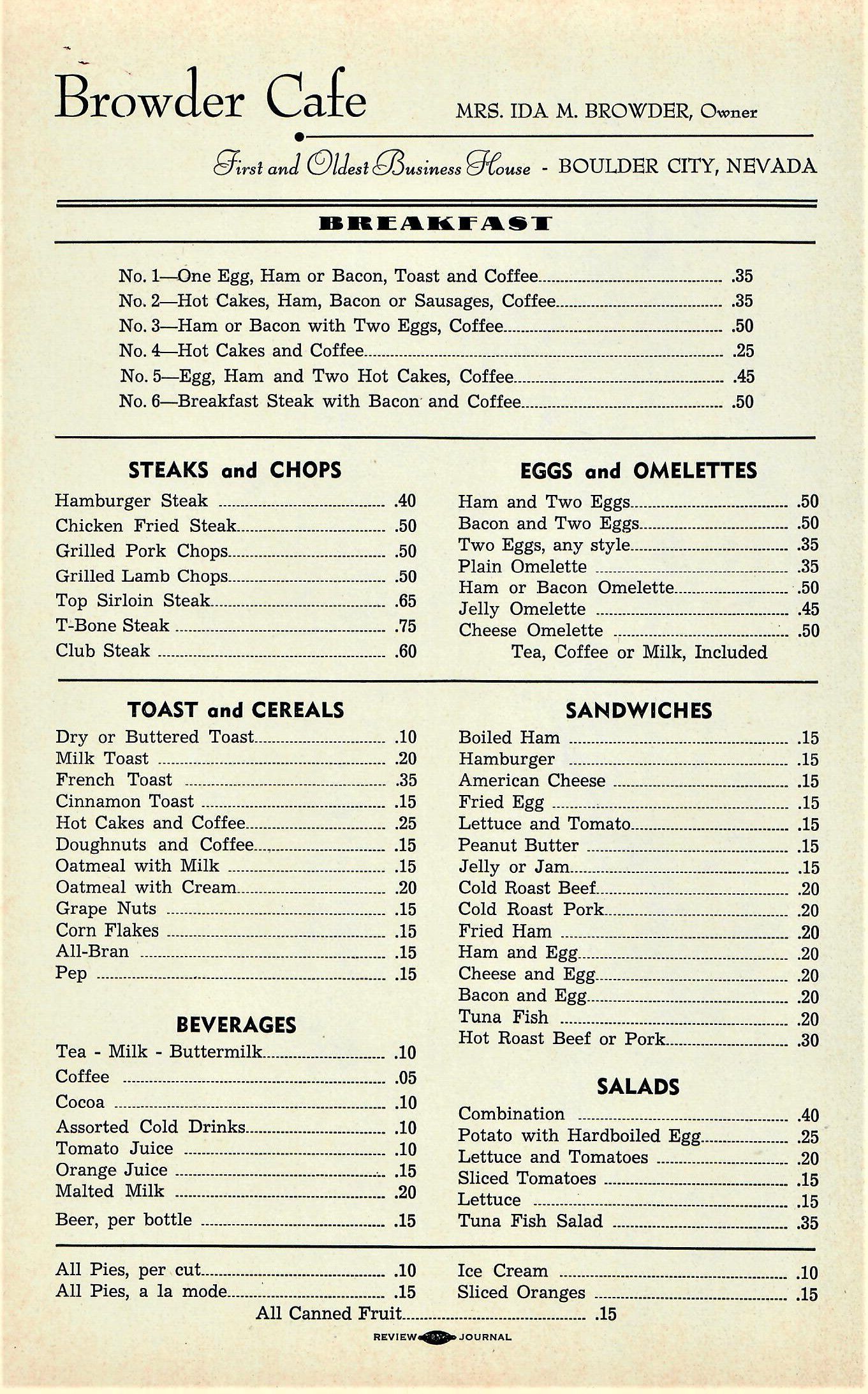 Restaurants, cafe's, and coffee houses, Boulder City, Browders