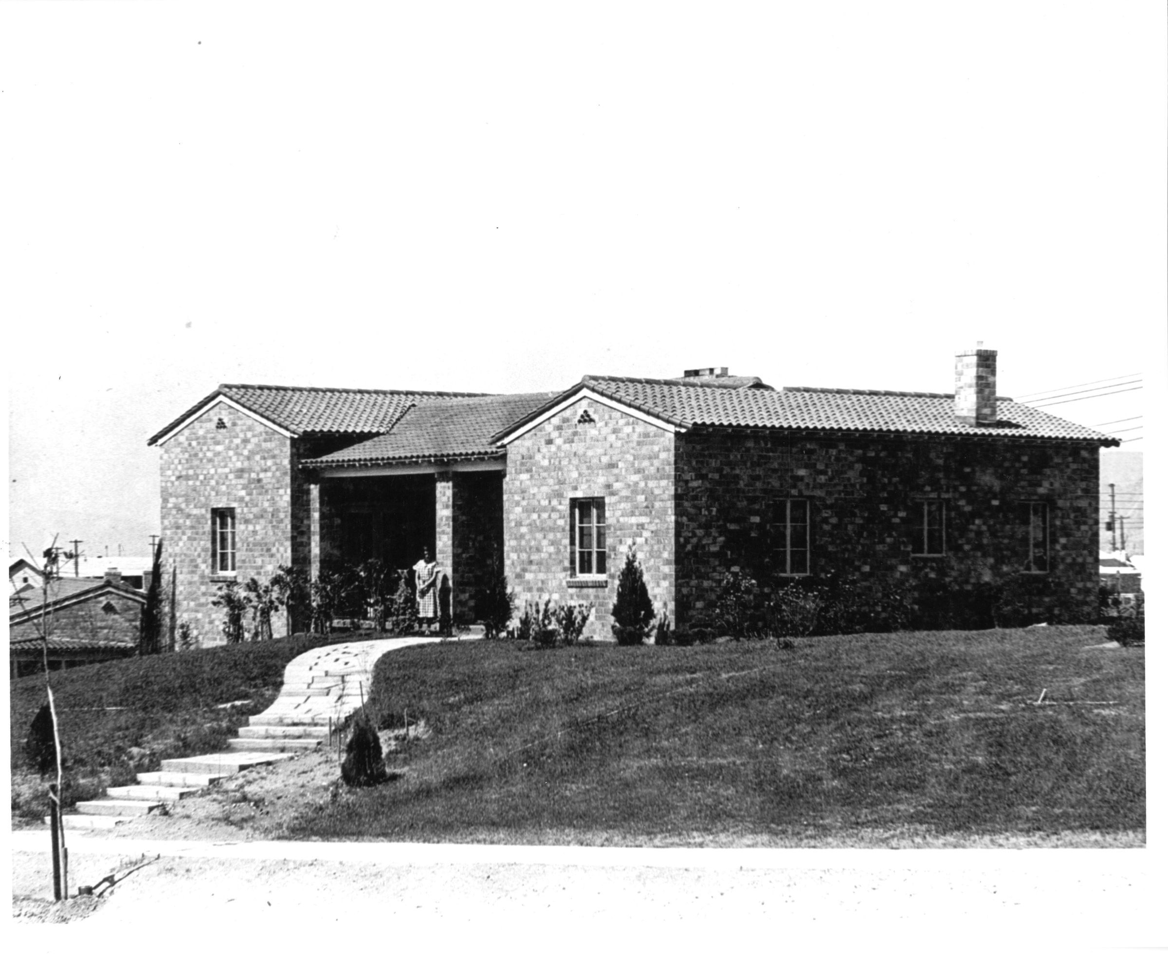 Boulder City housing; U.S. Bureau of Reclamation; Nevada Hwy June 1, 1932; Residence of Office Engineer John C. Page, Bureau of Reclamation, Boulder City, NV; showing development of lawn & landscaping; Nevada Hwy 312; June. 1, 1932; the girl may be daughter Jean or Mildred; USBR-Wash. no. 1223/temp. no. 836; Ben Glaha, photographerMade/Created
