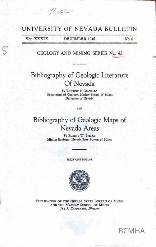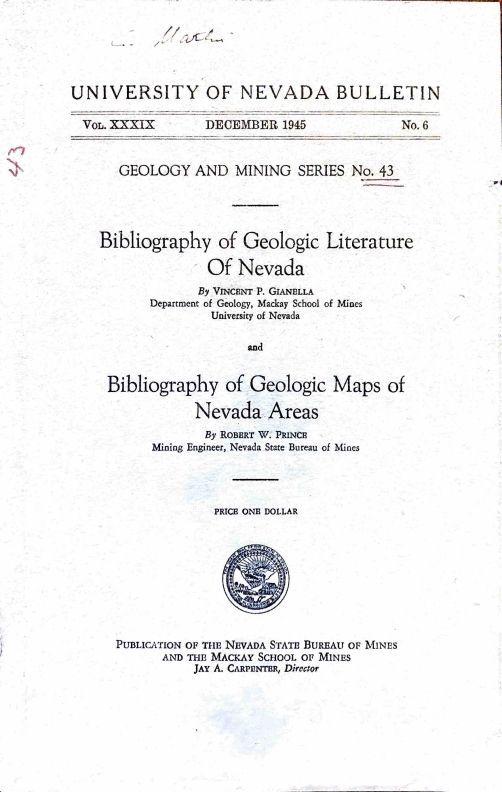 Author: University of Nevada Bulletin Vol 39 No. 6; published in 1945Cataloged By