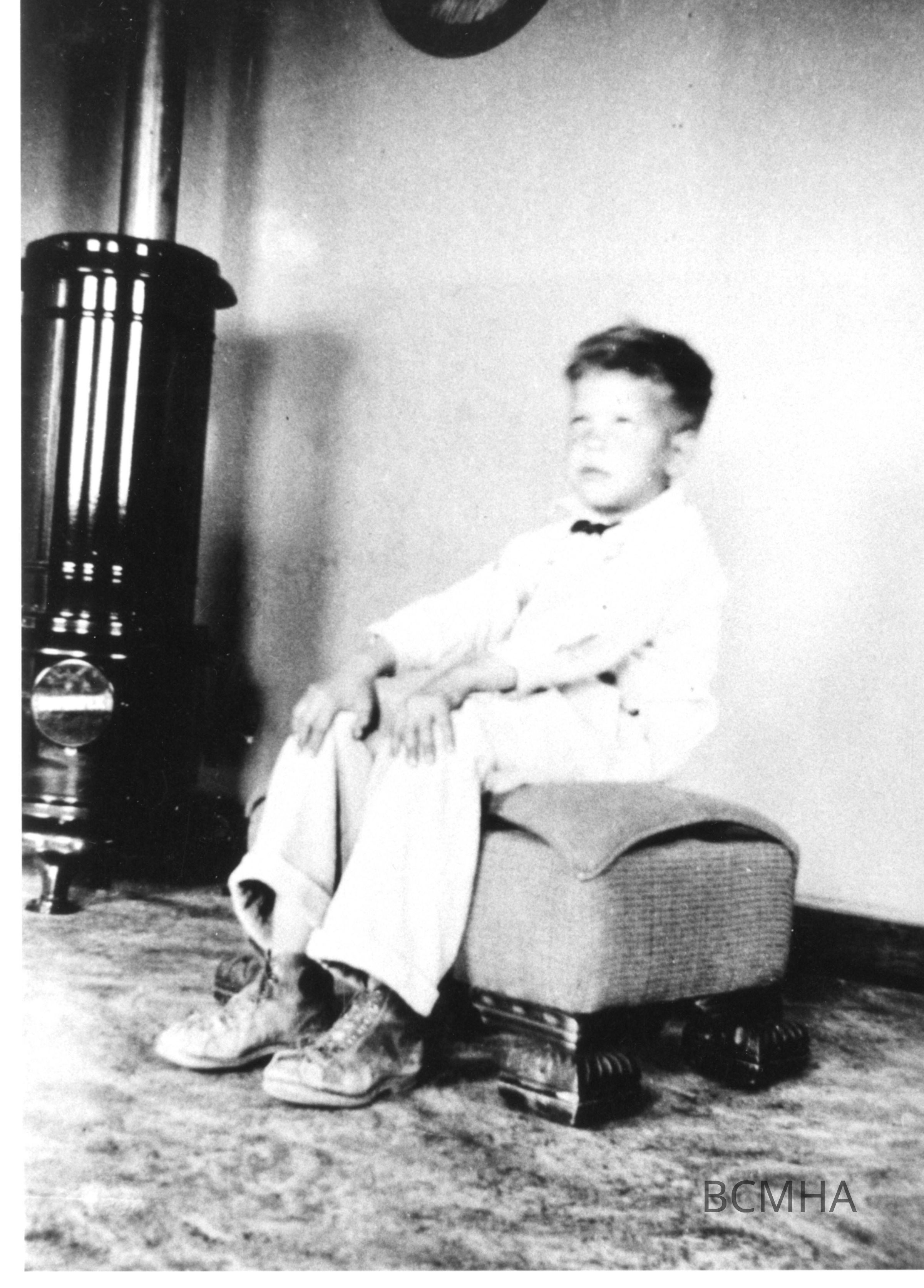 Billy Buck at 631 Ave. I 1935; Interior of 631 Ave. I; note the oil heater in the corner; Eileen Conners photoMade/Created