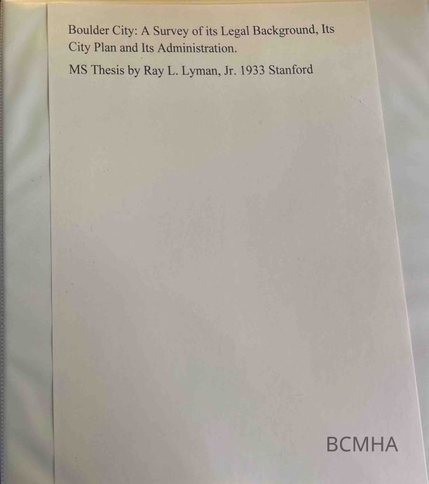 Boulder City: A Survey of its Legal Background, Its City Plan and Its Administration. MS Thesis by Ray L. Lyman, Jr. 1933 StanfordEntry/Object ID