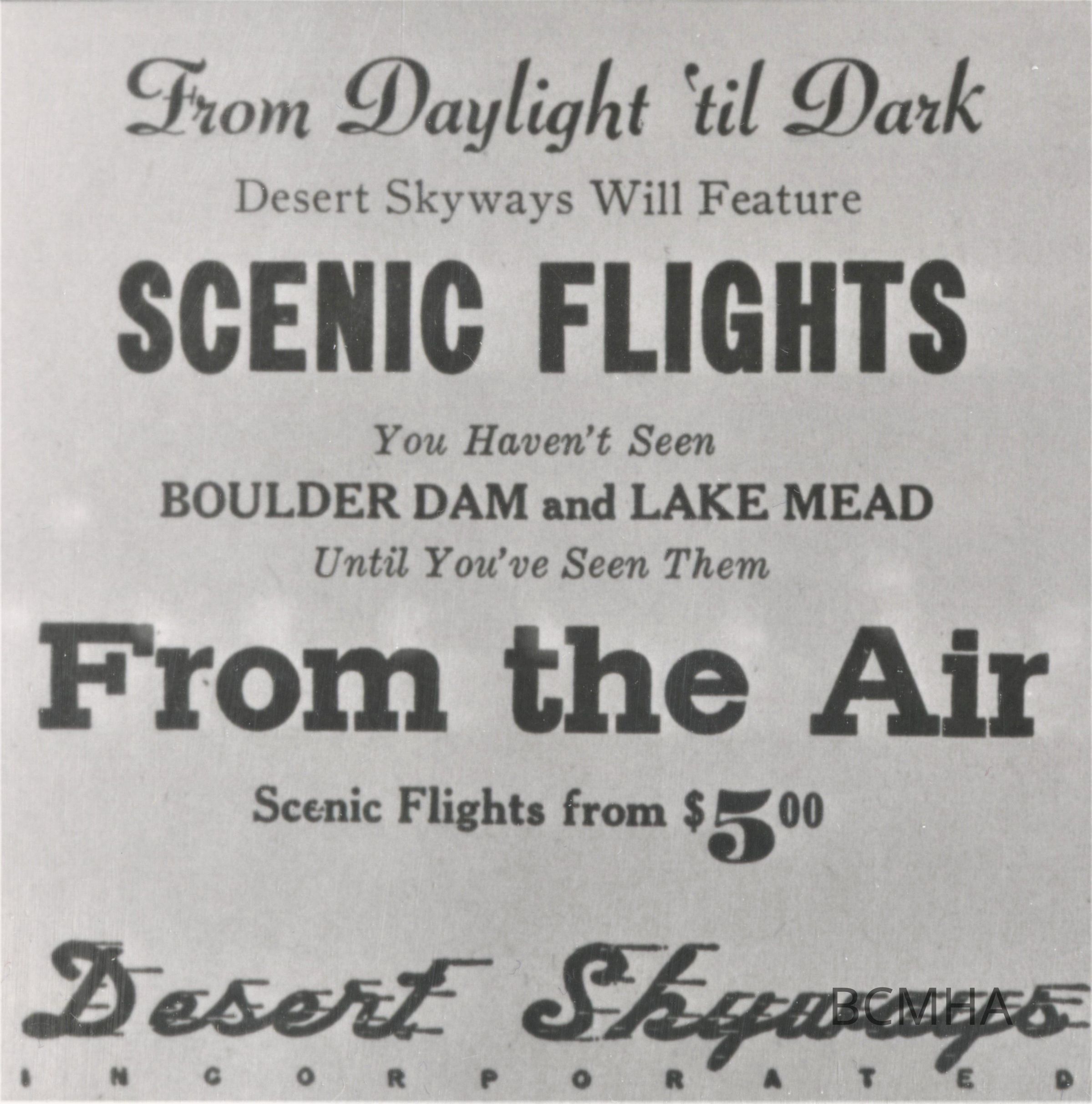 Boulder City- airports and aviation: Desert Skyways advertisement; Boulder City News, Th., November 3, 1945, p. 6Collection
