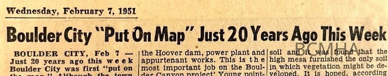 Boulder City - Anniversaries: Founding: 20th (1951)Entry/Object ID