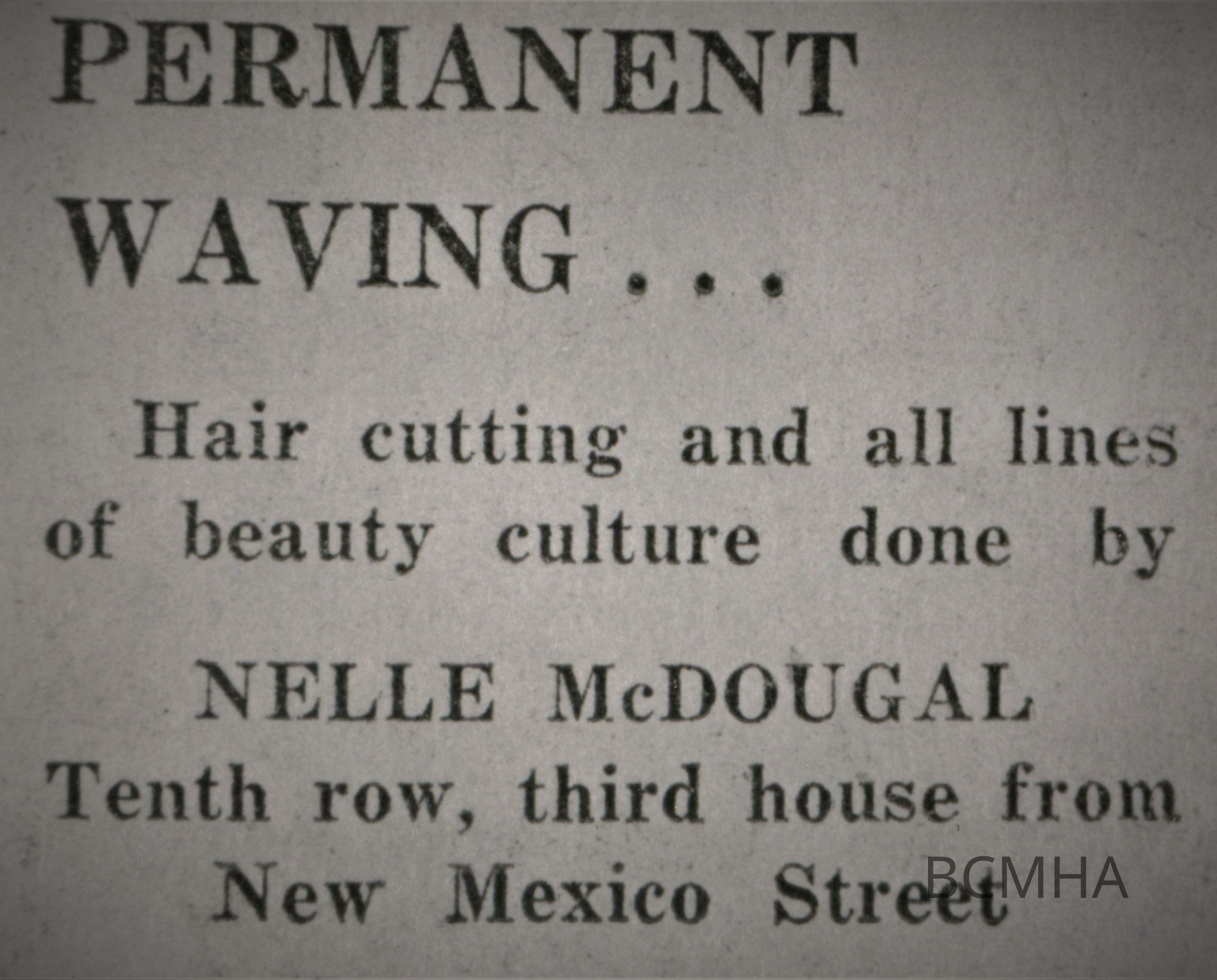 Boulder City barber & beauty shops: advertisements, 1930s: Nelle McDougal;