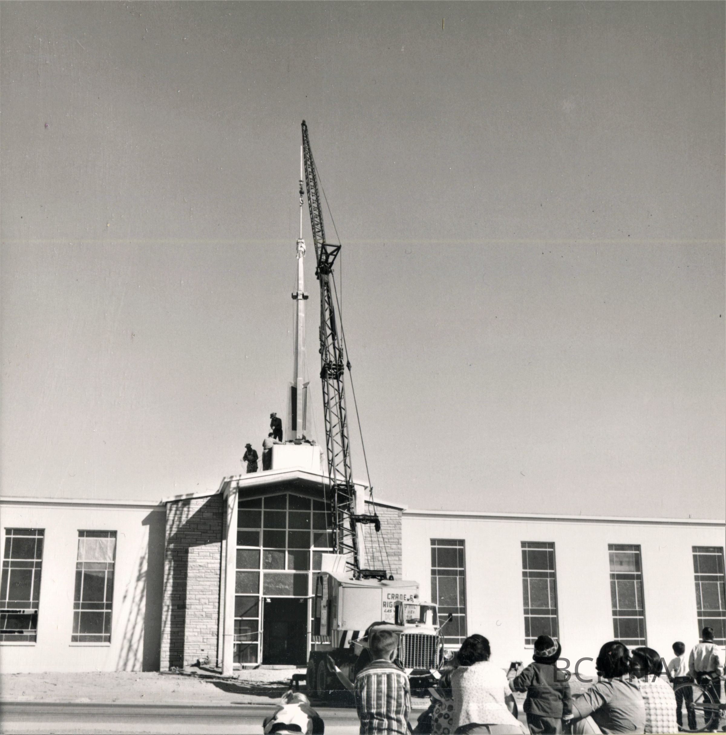 Boulder City LDS: placing the spine, February 1958Entry/Object ID