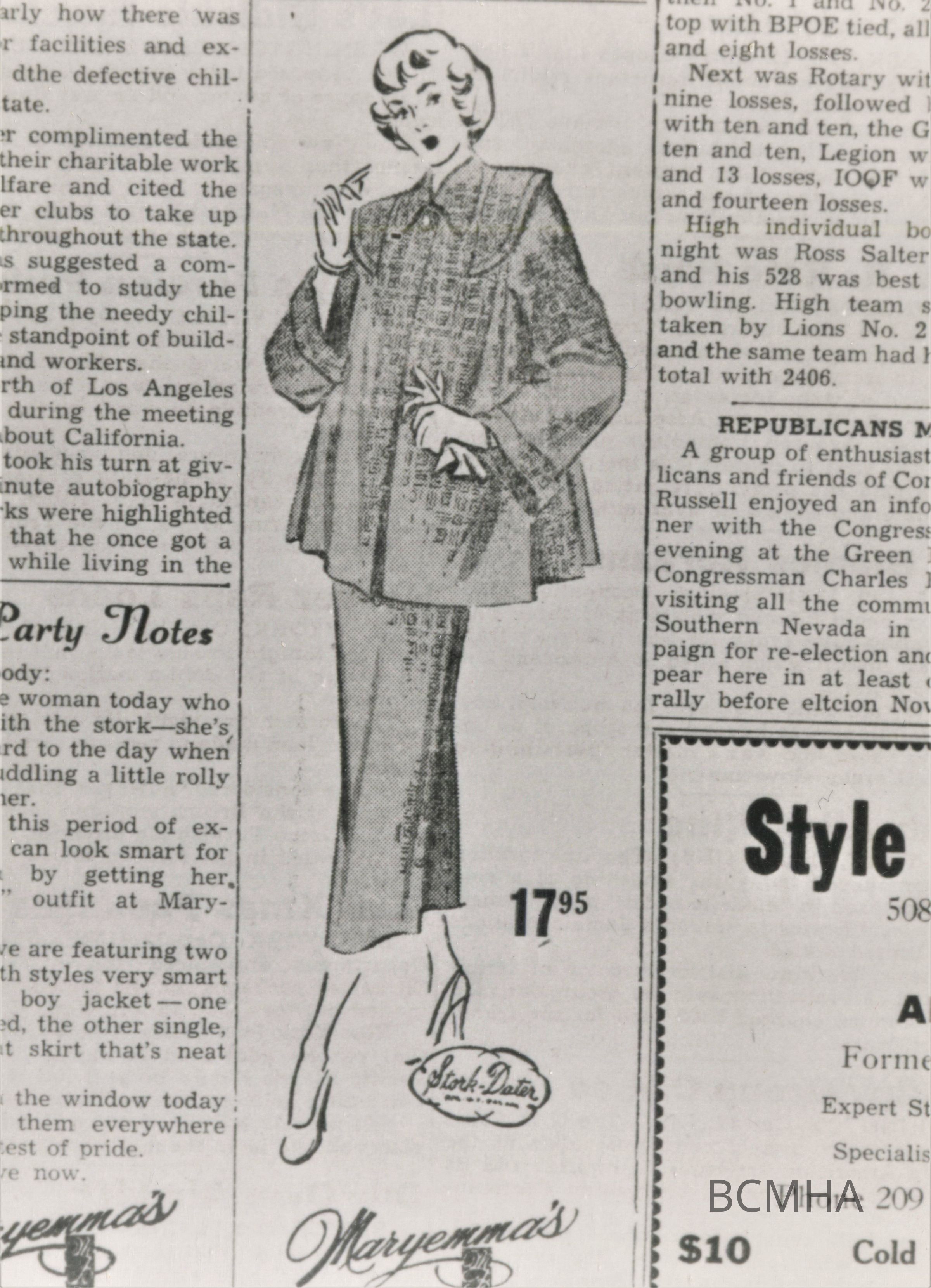 Boulder City clothing stores: Maryemma's advertisement; Boulder City News, Th., October, 13, 1948, p.2Collection
