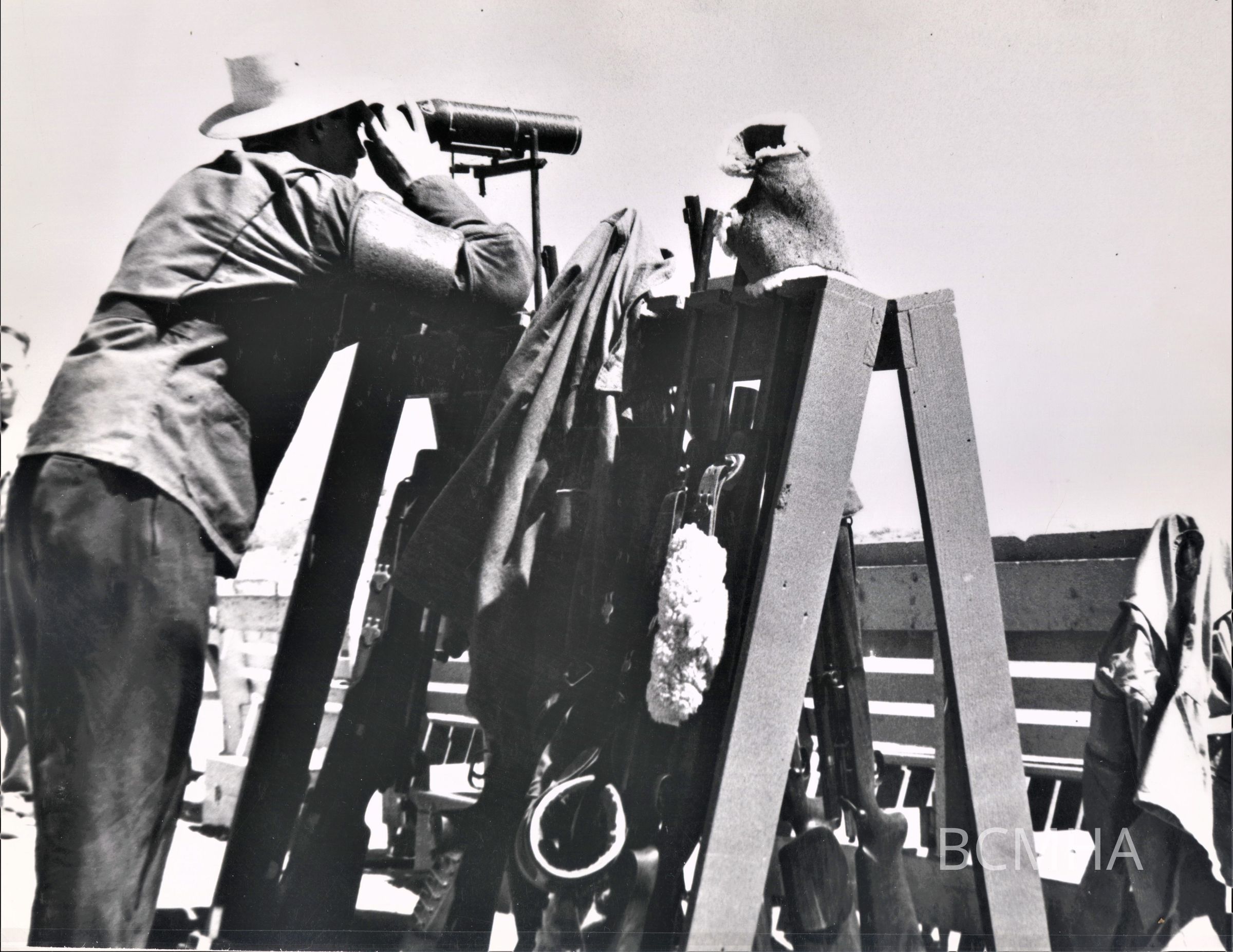 Boulder City clubs and organizations: Boulder Rifle and Pistol Club; unidentified person scoping to determine hits from the big rifles, c. 1950'sCollection