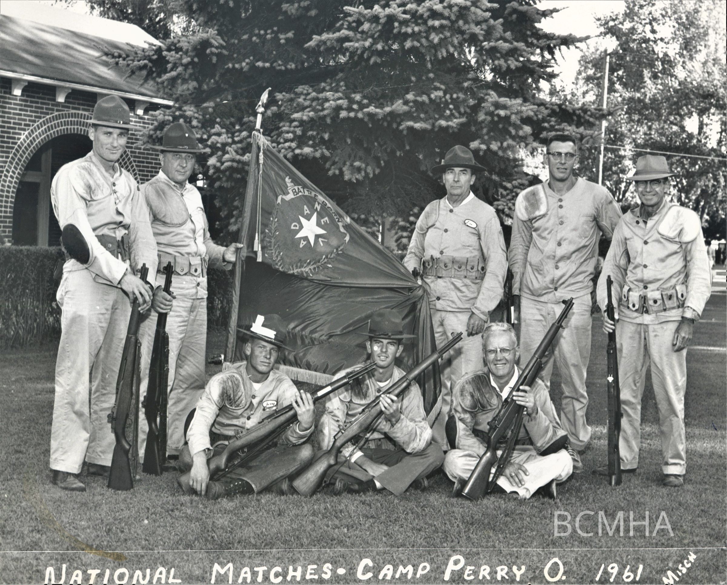 Boulder City clubs and organizations: Nevada State team at the national matches at Camp Perry, Ohio, 1961[second from right standing Bob Unverdorf; sitting on right Wally Jauason]; Misch Photo Center, Port Clinton, OHCollection
