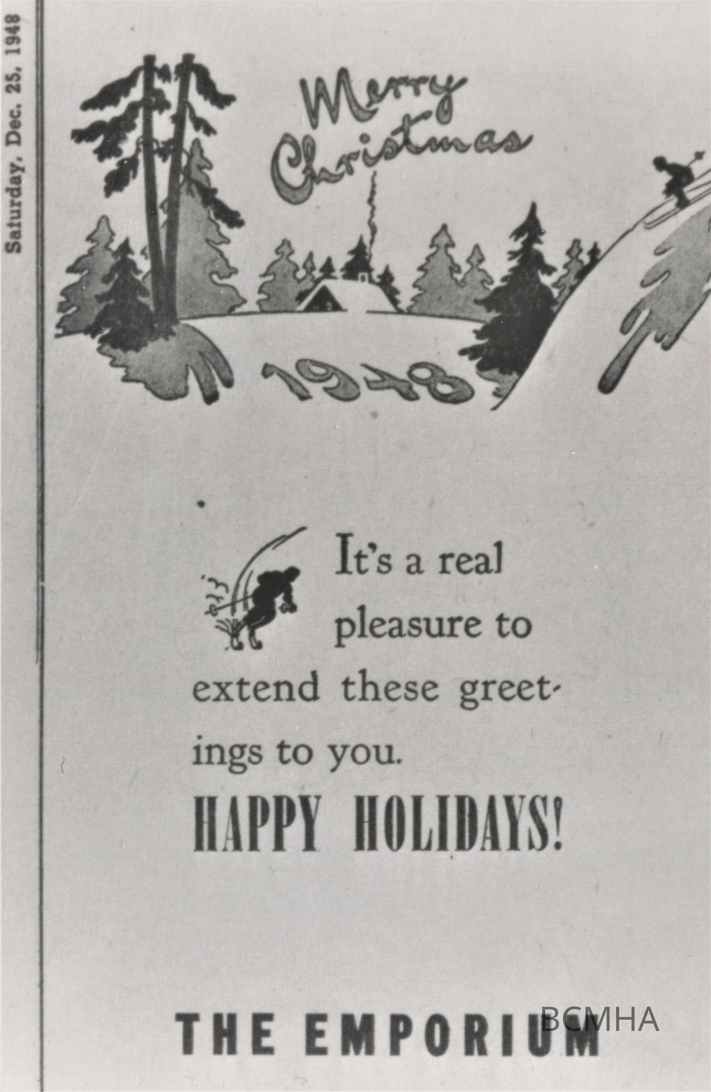 Boulder City department stores: Emporium advertisement; Boulder City News, Th., Dec. 25, 1948, p.8Collection