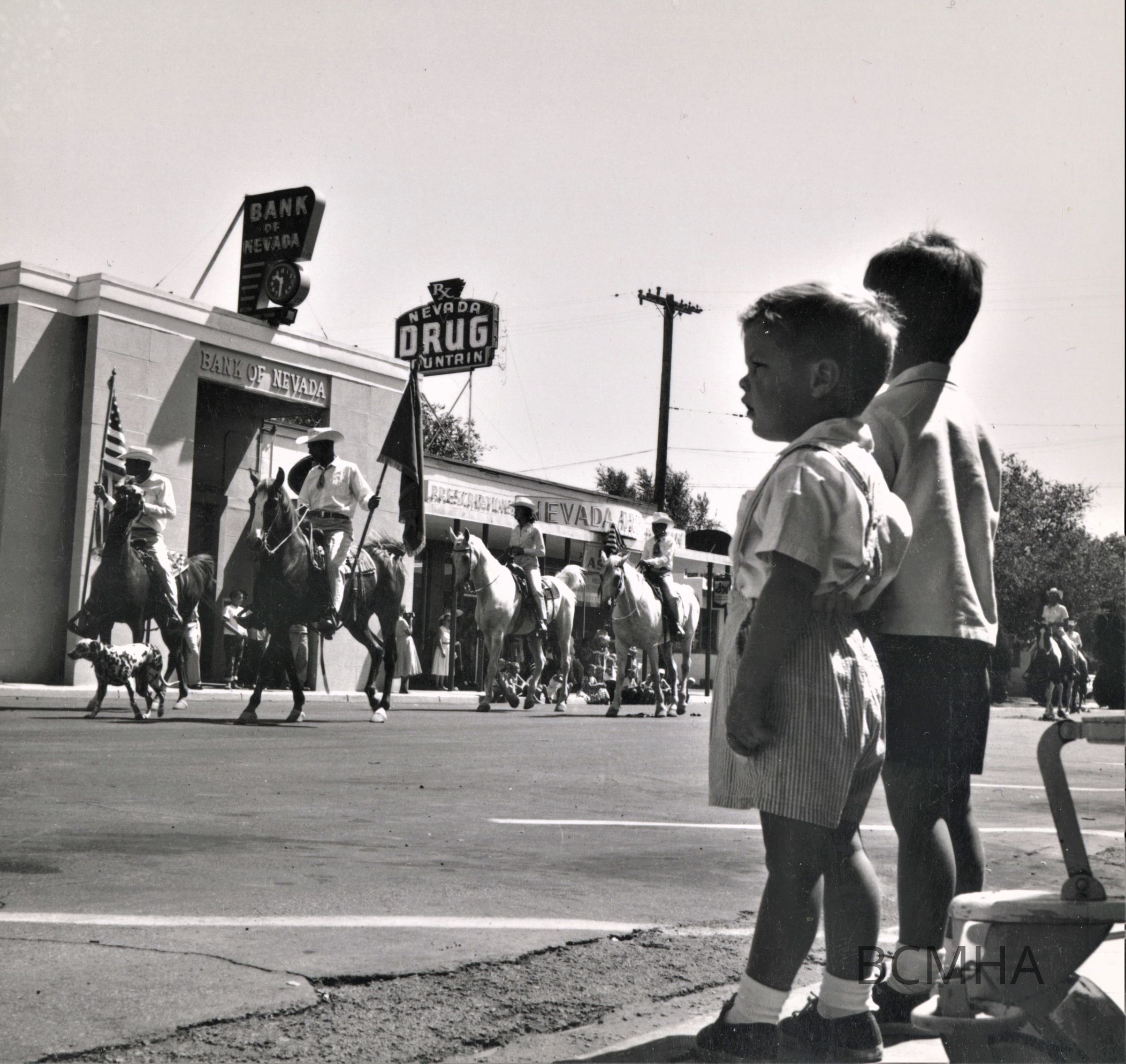 Boulder City holidays: Damboree, July 4, 1960: parade on Arizona Street; The two boys shown on the right standing: Dave and Dennis McBride; NSMHS photo; Cliff Segerblom, photographerCollection