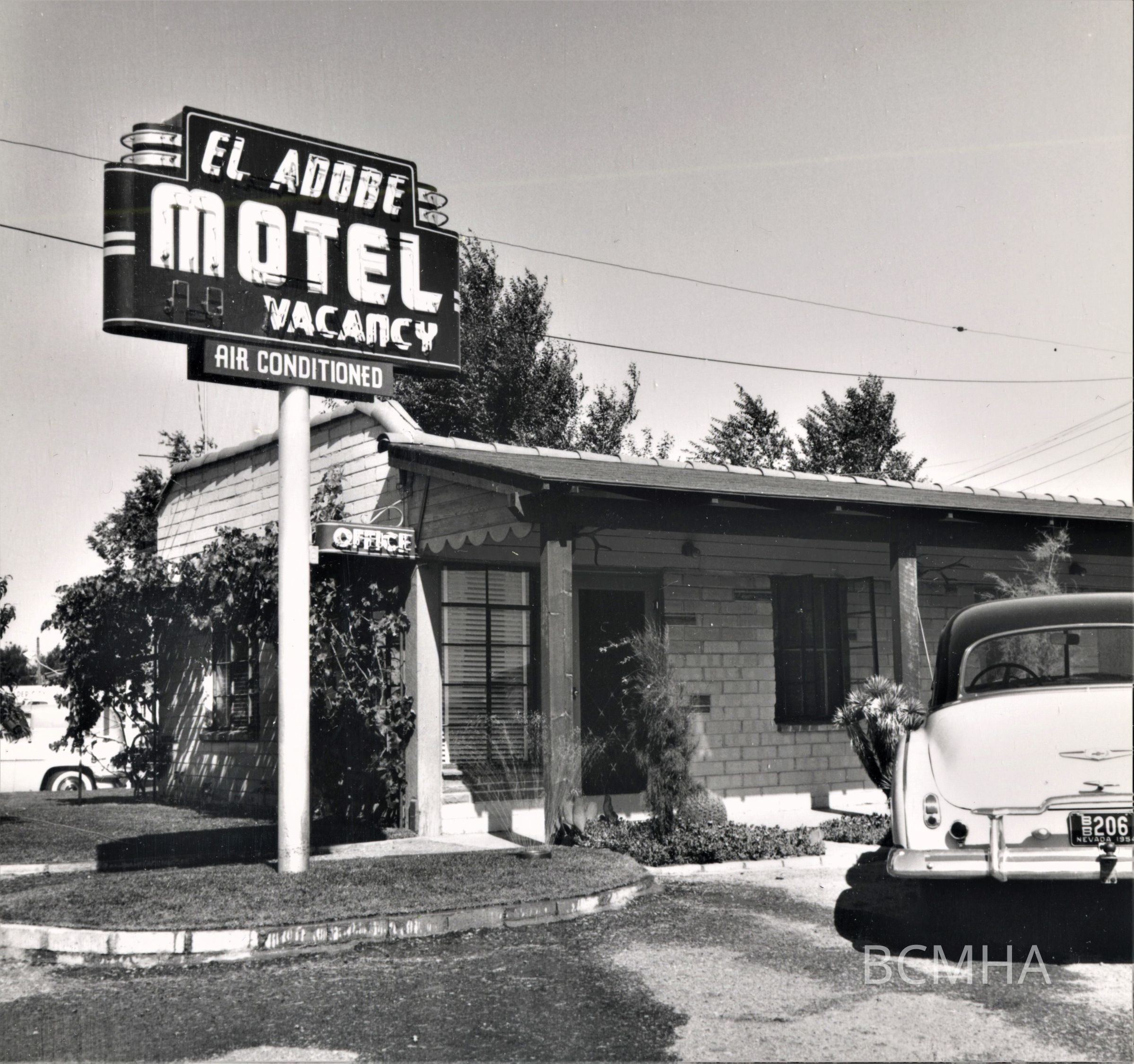 Boulder City hotels, motels, and auto courts: El Adobe Motel, June 1954 [continued as the Starview September 1959]; NSMHS photo; Cliff Segerblom, photographerCollection