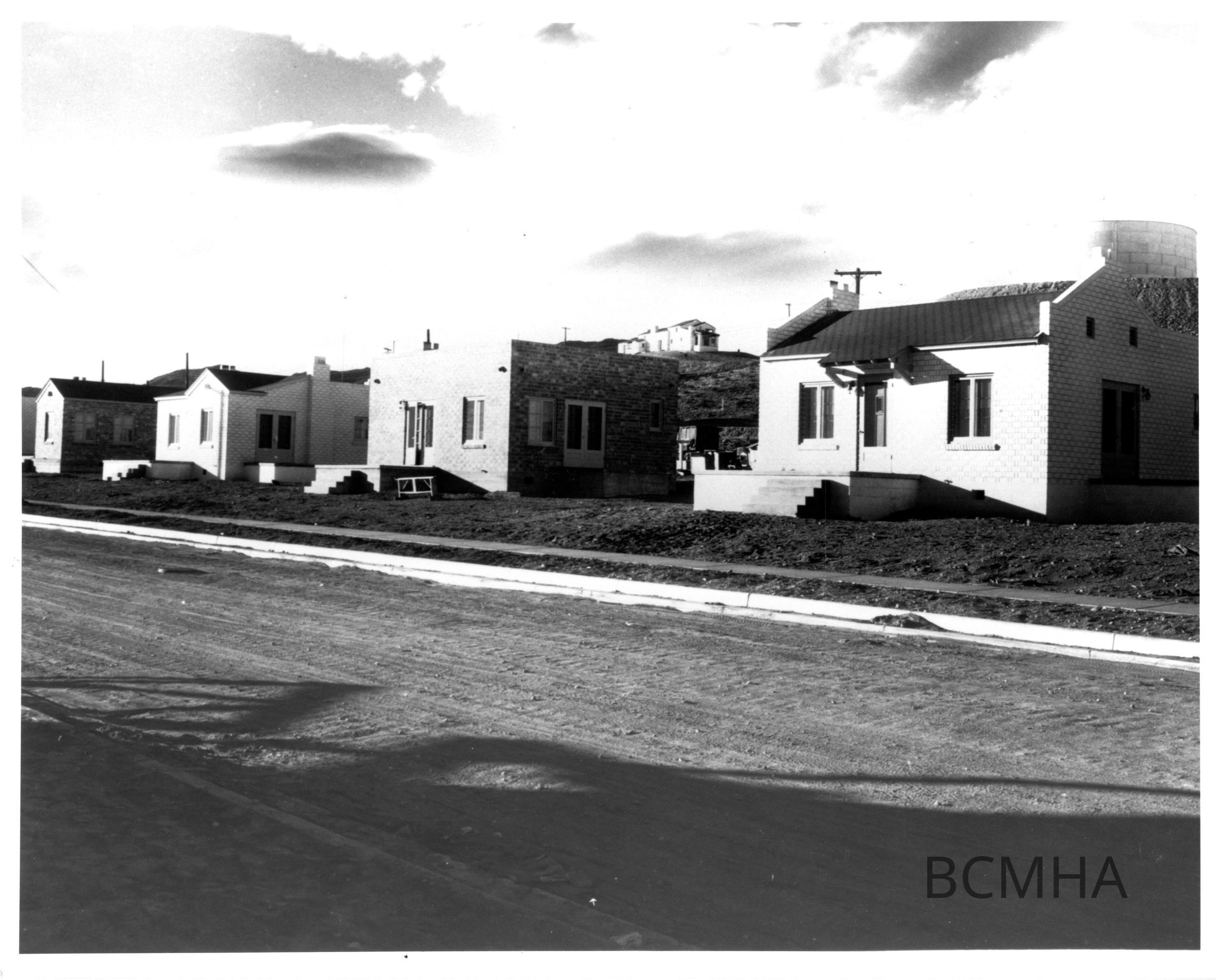 Notes: Title Overflow: Boulder City housing: USBR Colorado St. "A view showing types of sm. Brick residences erected by the Govt. for the married employees of the USBR. 28 similar homes have been or will be erected & 33 frame cottages. Six Companies Inc. guest house on the hill in the background