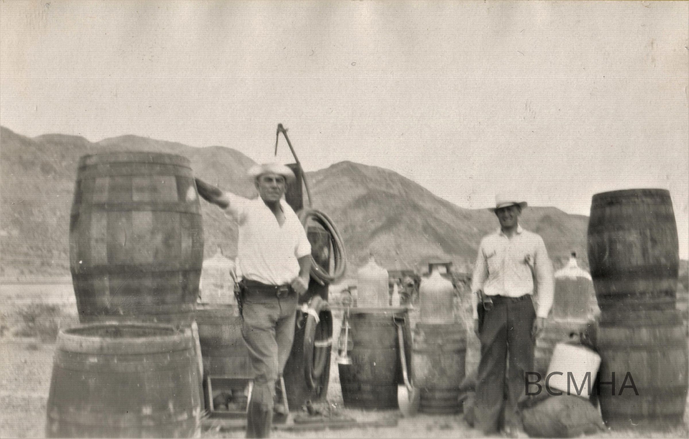 Boulder City law enforcement; bootleg liquor raid; at Railroad Pass; c. 1931-32;