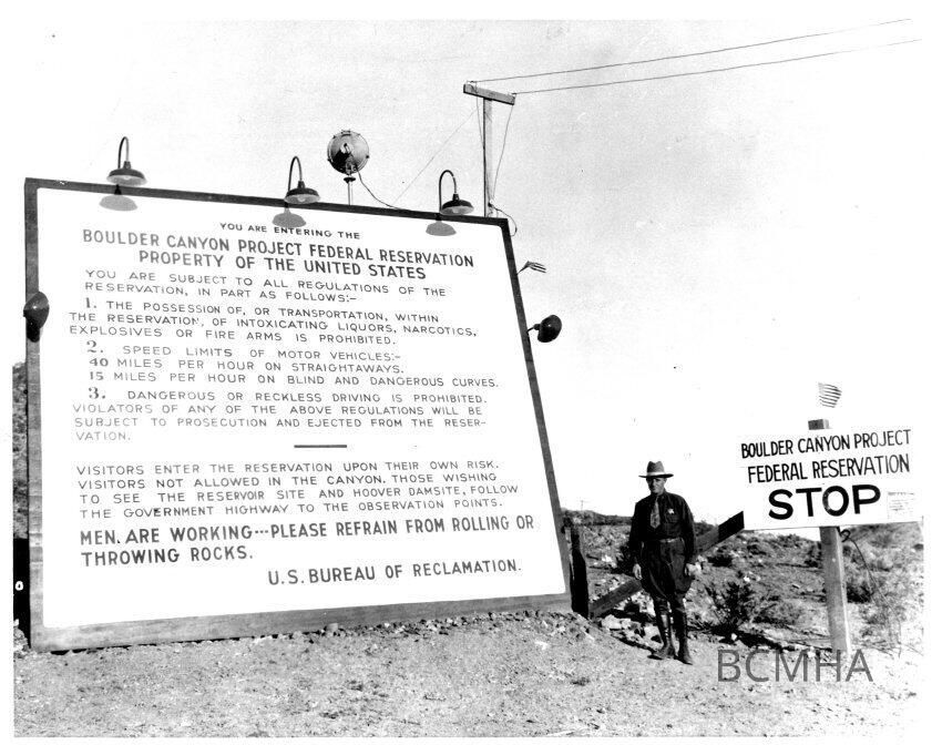 Boulder City law enforcement -Hoover Dam reservation gate 1932Entry/Object ID