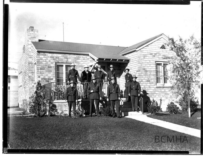 Boulder City law enforcement; U.S. Bureau of Reclamation rangers; 1933; posed at 1320 Colorado St.; back, l-r: William "Bill" Getts; Glen E. "Bud" Bodell; Pete Stringfellow; William E. "Bud" Stringfellow; front l-r: Robert K. Ziemer; Jack Heddy; John Fred JensenCollection