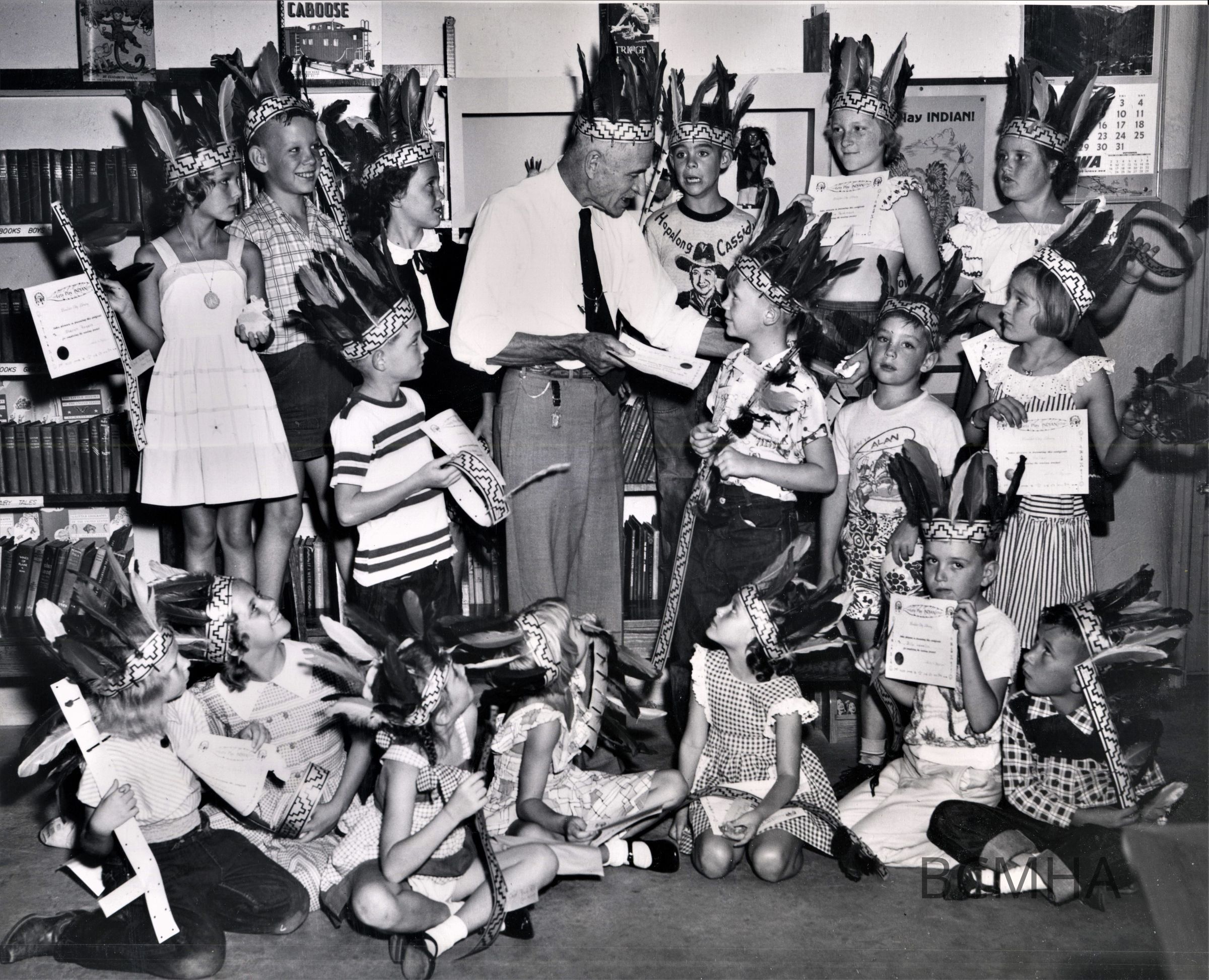 Boulder City Library- children's summer reading program, "Let's Play Indian," August 31, 1951; USBR photo no. BCP X-3018Collection