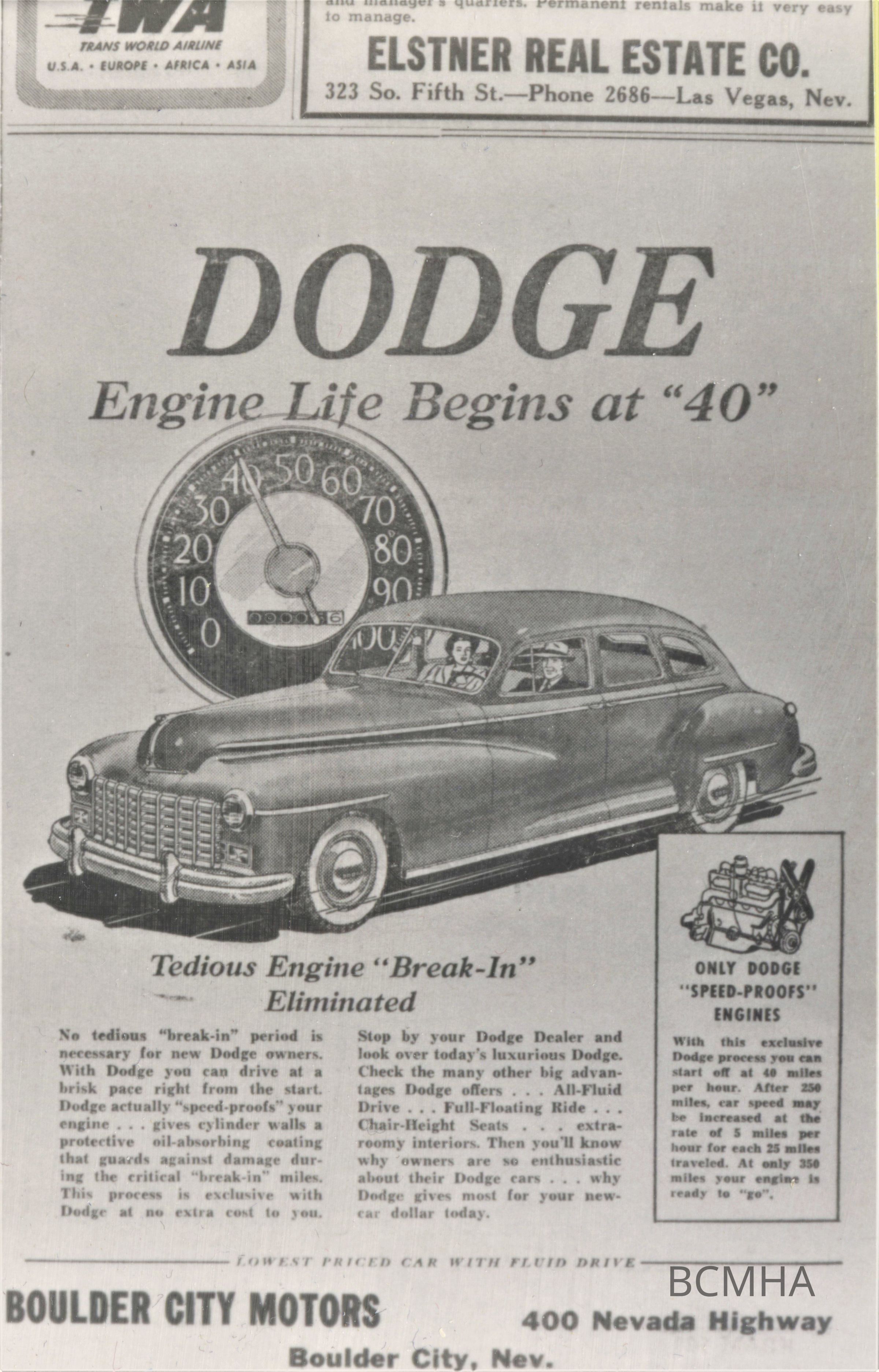 Boulder City Motor advertisements: 1948 Dodge; Boulder City News, Th., October 6, 1948, p. 8Collection