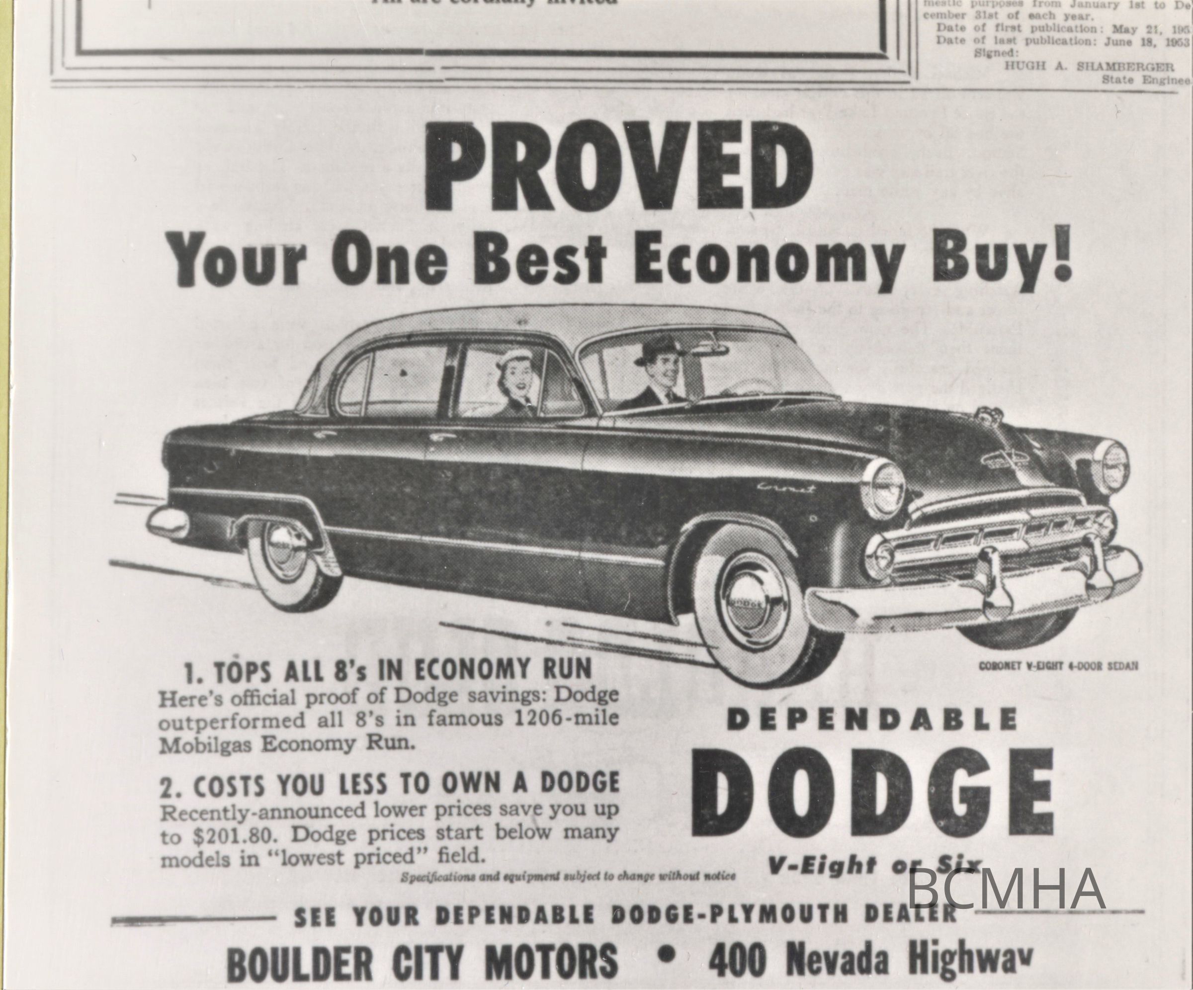 Boulder City Motor advertisements: 1953 Dodge; Boulder City News, Th., June 11, 1953, p.3Collection