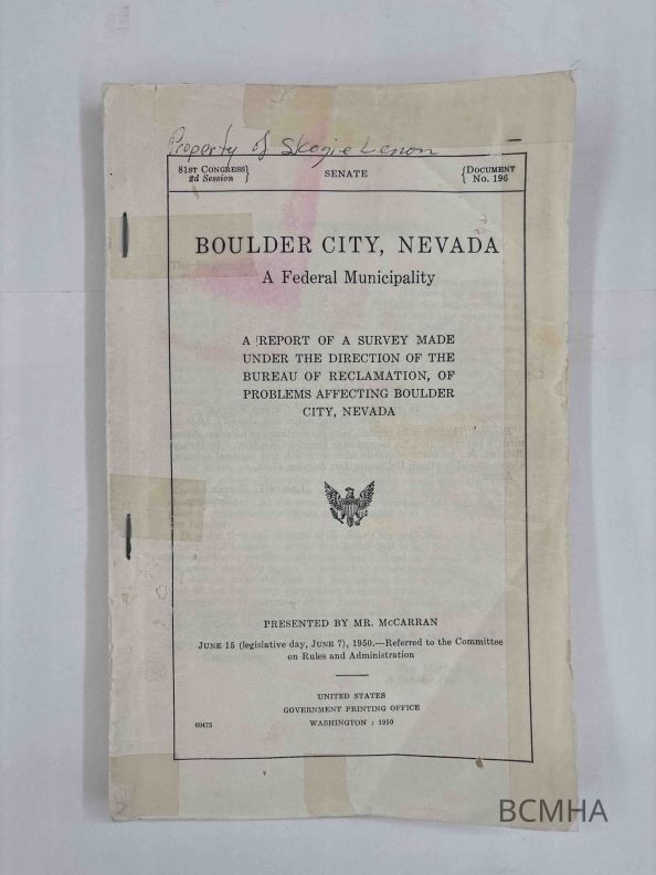 Boulder City, Nevada, A Federal Municipality; A report of a survey made under the direction of the Bureau of Reclamation, of problems affecting Boulder City, Nevada;Entry/Object ID