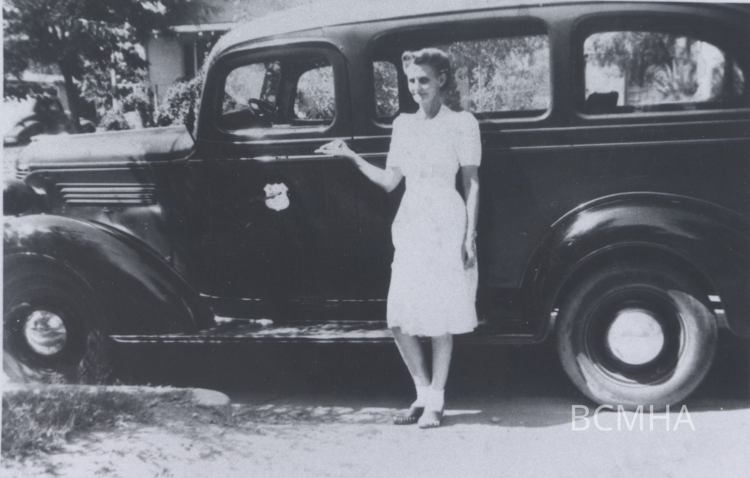 Boulder City Post office: Bureau of Reclamation mail car, aka the Candy Wagon, c. 1945; Lida Buck, shown here, delivered the mail between Hoover Dam and the Bureau of Reclamation administration building in Boulder City; Eileen Conners photoCollection