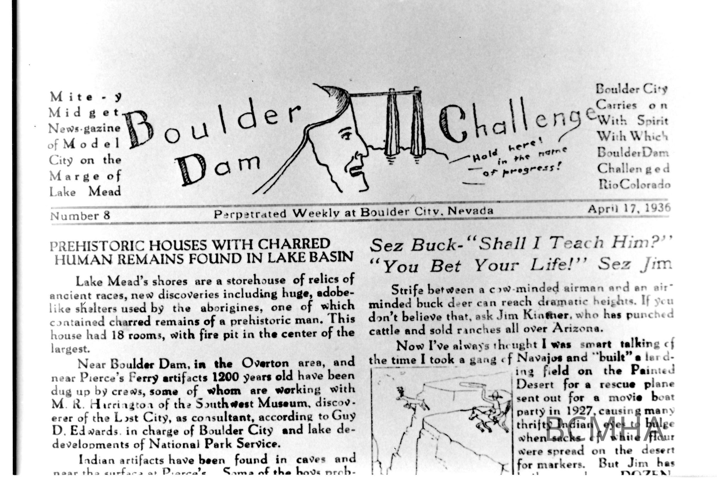 Lost City announcement in Boulder Dam Challenge.: Boulder Dam Challenge, no.8, April 17, 1936Made/Created