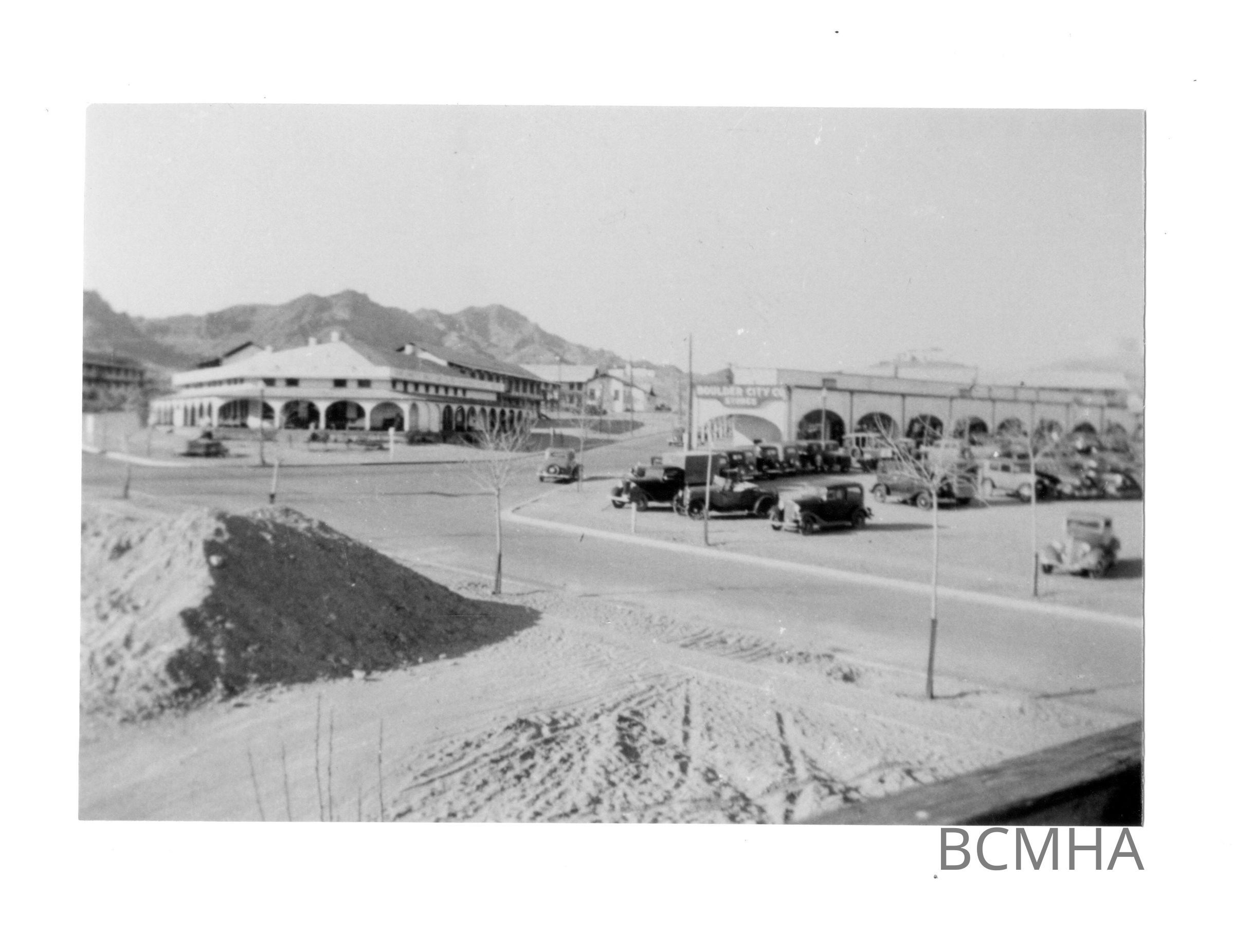 Boulder City; roads & Street; intersection of New Mexico, center; NV. Hwy; Birch St., right; & Cherry St., left; Six Co. recreation hall, left; Boulder City Co. Stores, rightMade/Created