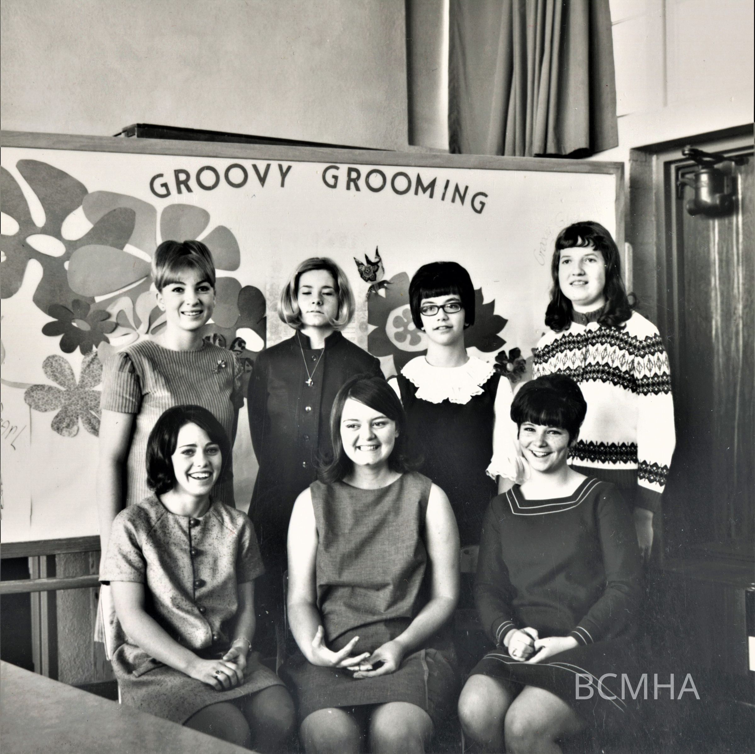 Boulder City schools: Boulder City High School: Future Homemakers of America [FHA], 1968 l-r back: Linda Wilson; Nancy Shope; Judy Wagner; Barbara Blanchard l-r front: Judy Grinsted; Karen "Tuna" King; Violet Rowland; NSMHS photo; Cliff Segerblom, photographerCollection