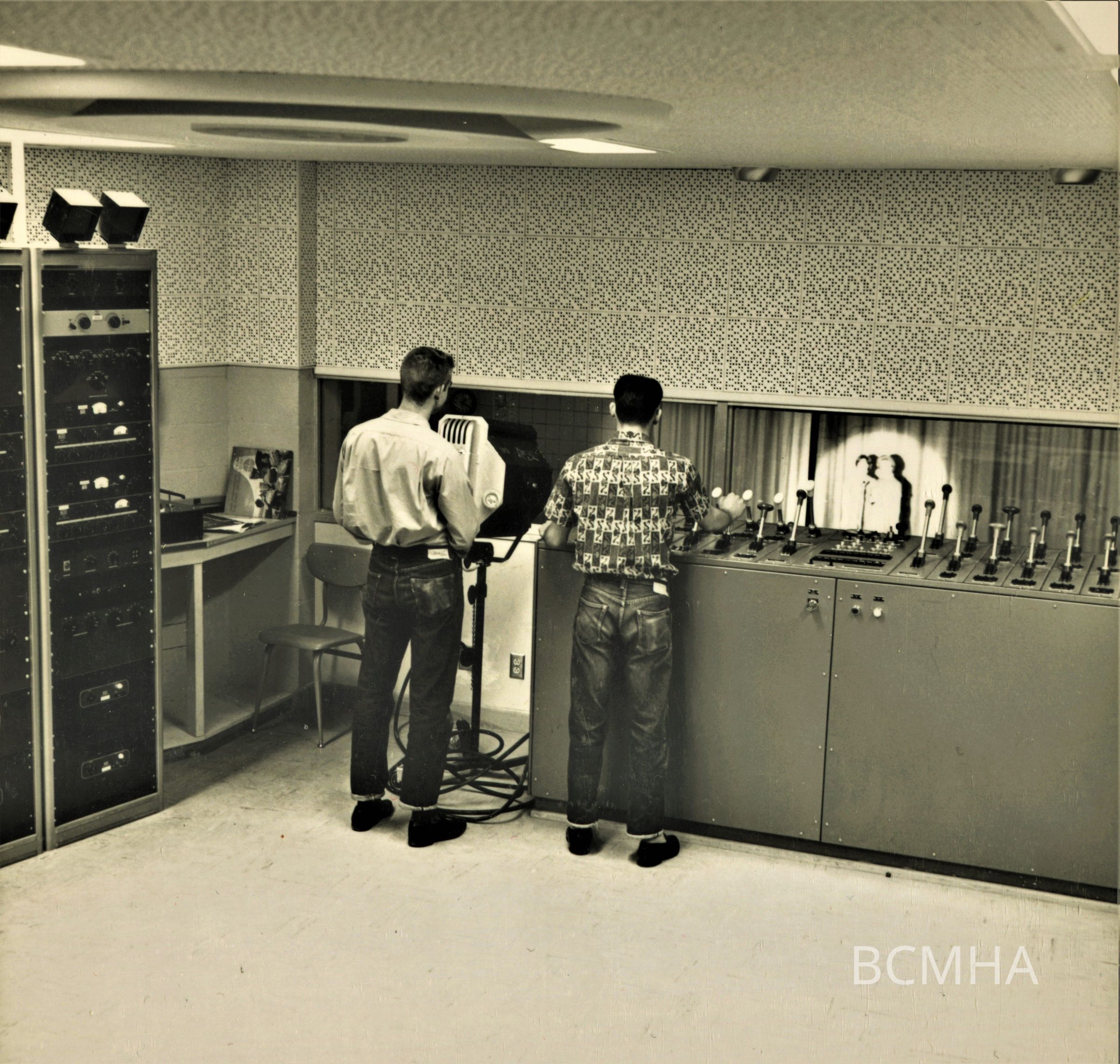 Boulder City- schools: Boulder City High School multi-purpose building control booth, February 1962; NSMHS photos; Cliff Segerblom, photographerCollection