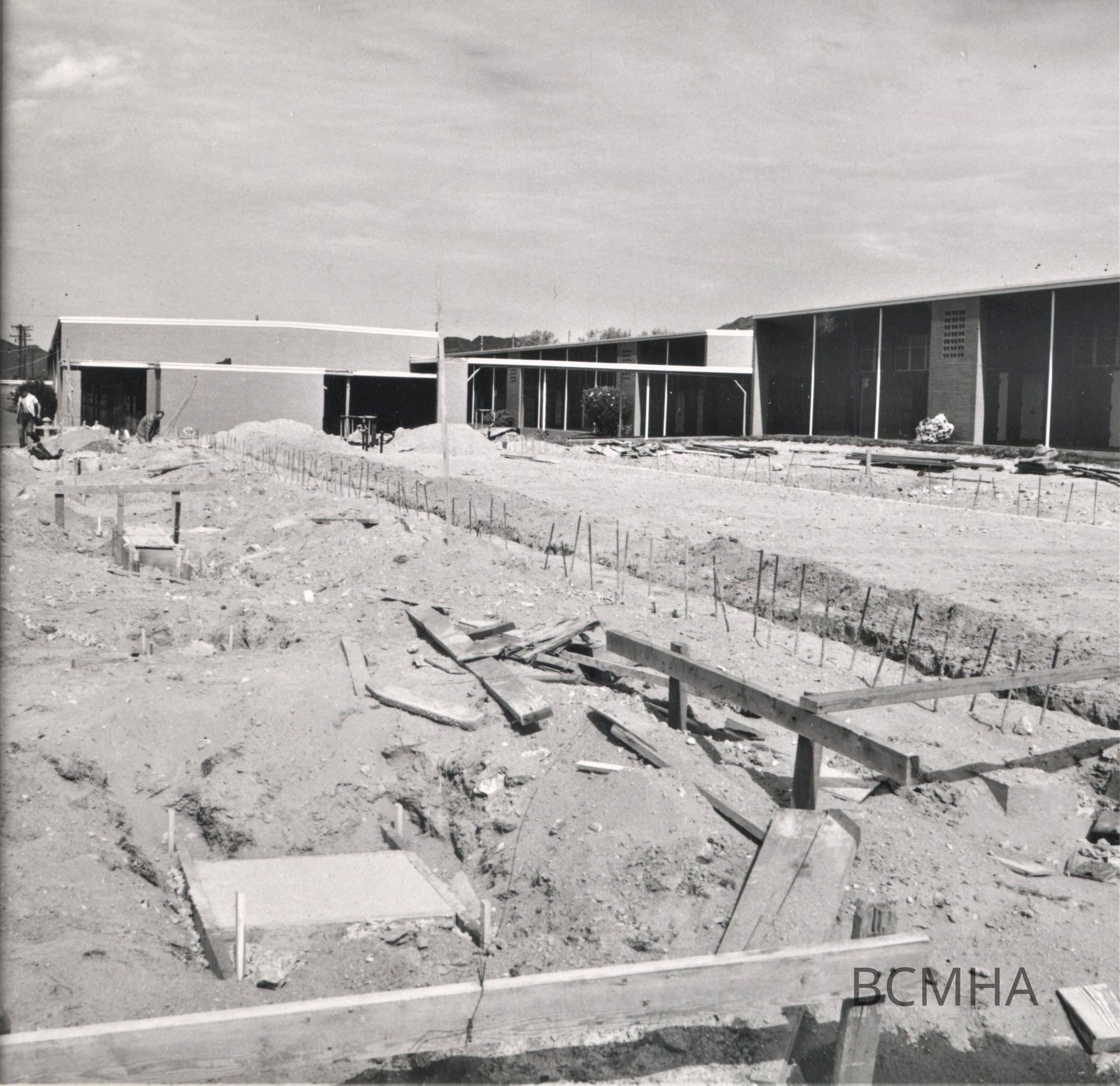 Boulder City schools: Boulder City Junior-Senior High School new wing under construction, July 1956; NSMHS photo; Cliff Segerblom, photographerCollection