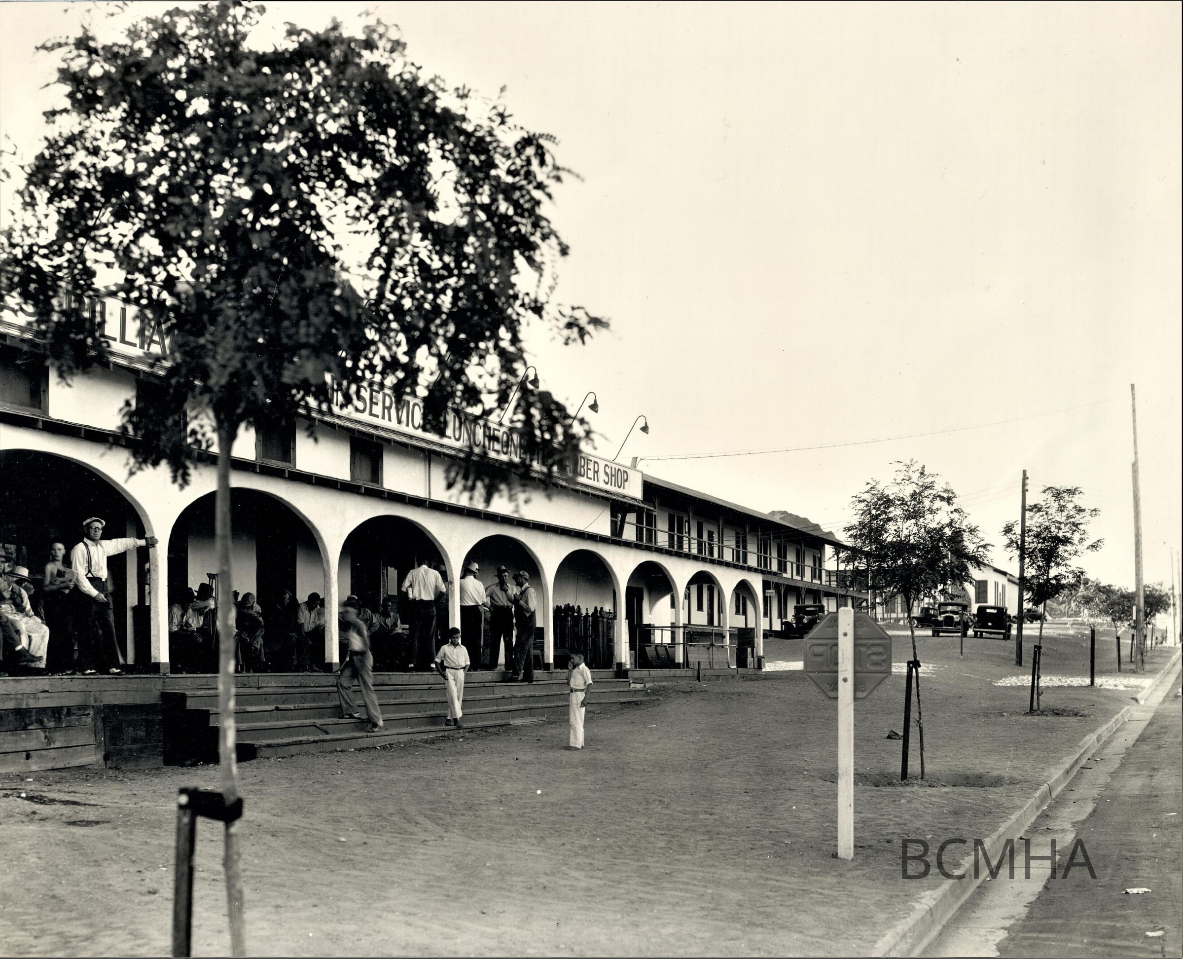 Boulder City; Six Companies recreation hall; 30 September 1933; Six Co. Office dormitory with chimney in background; UNLS; Union Pacific Railroad collection; 0043:0111Lexicon