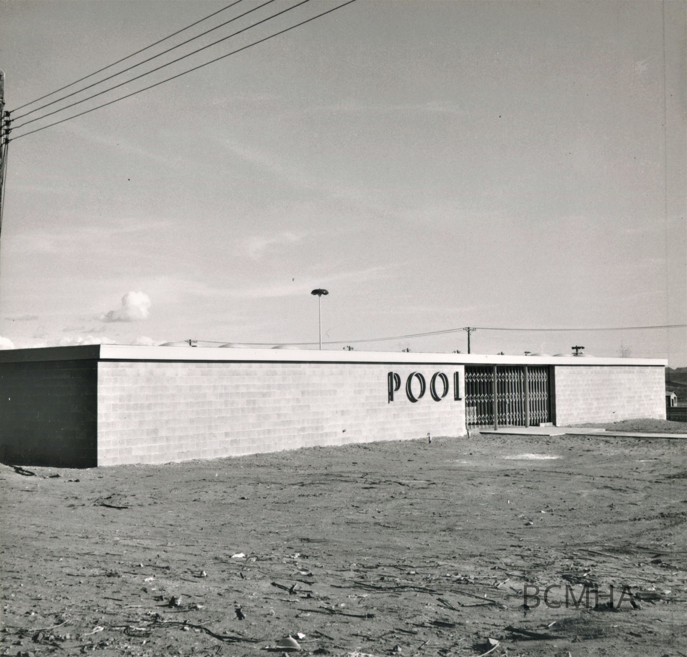 Boulder City sports and recreation; public pool: nearing completion, 1958; NSMHS photo; Cliff Segerblom, photographerCollection
