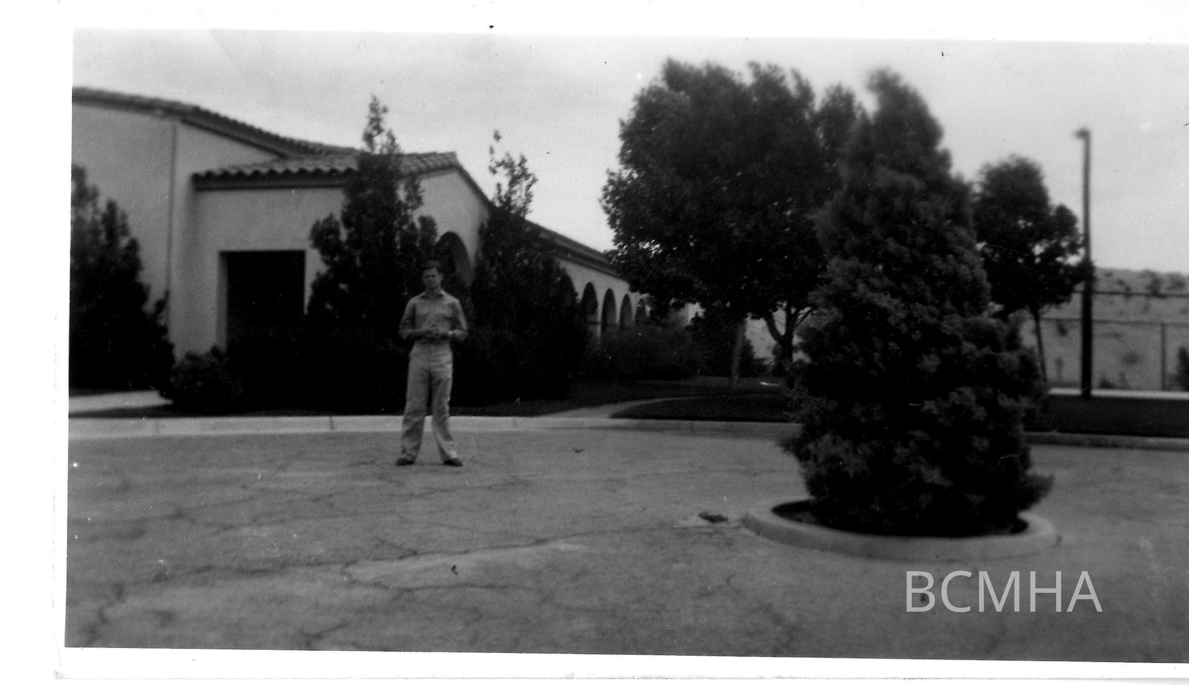 "One of the homes in Boulder City. Mexican style as most of them are" written on back, photo card says, "USBR Government Dormitory No.1 with CCC enrollee Major Merrick."Made/Created